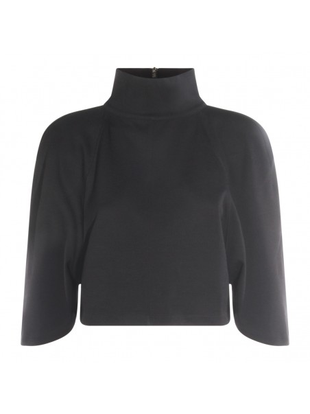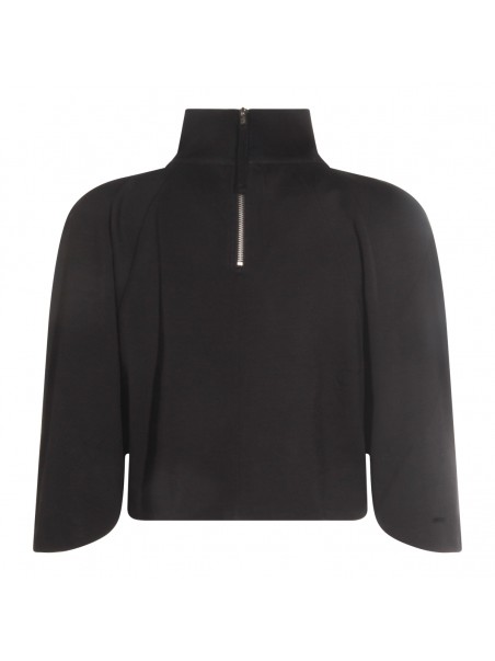 Black viscose top from Thom Krom featuring high collar, midi sleeves, back zip fastening and regular vestibility.