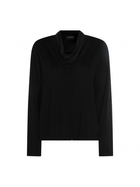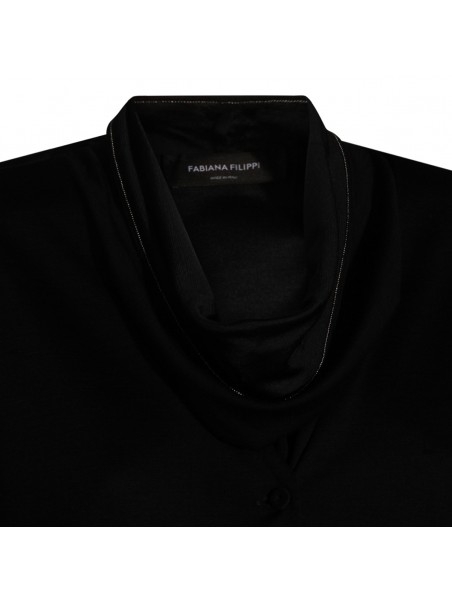 Black viscose top from Fabiana Filippi featuring soft collar, long sleeves and regular vestibility.