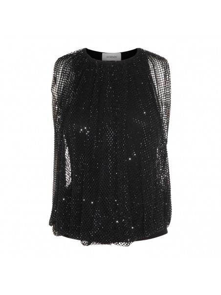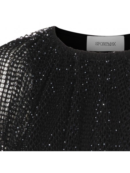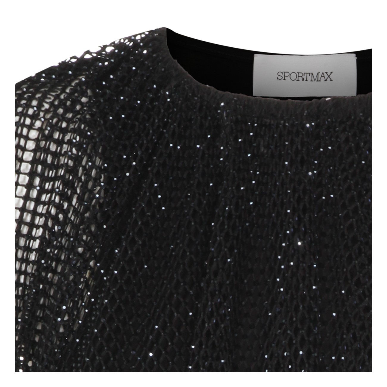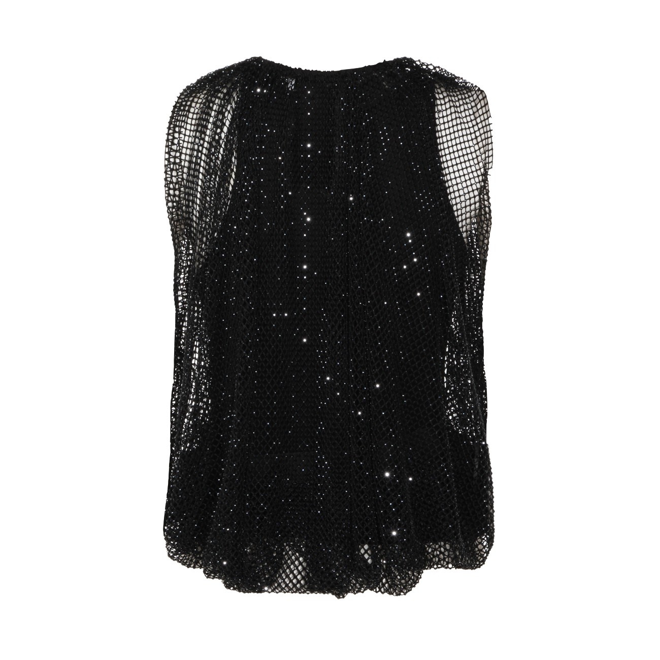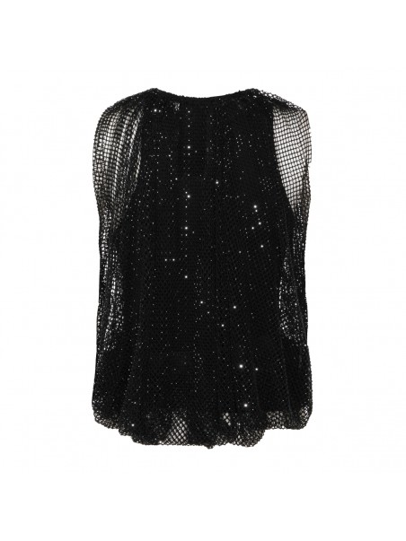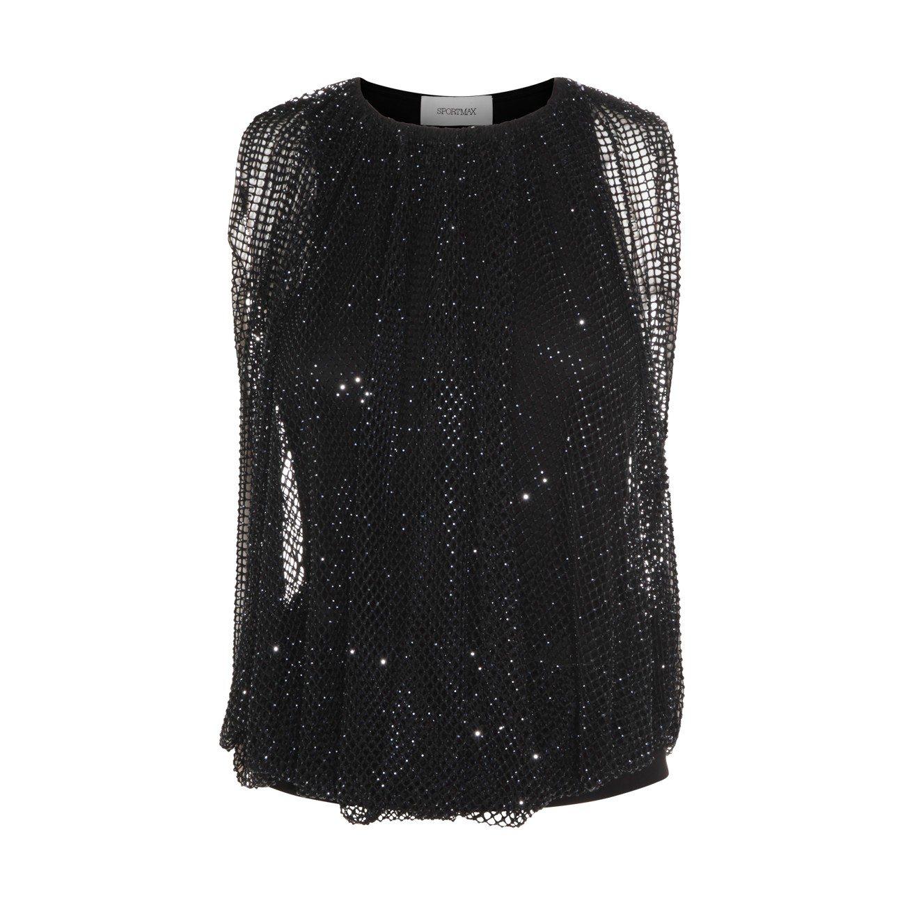 Black top from Sportmax featuring round collar, sleeveless, loose vestibility, transparencies and tank top.