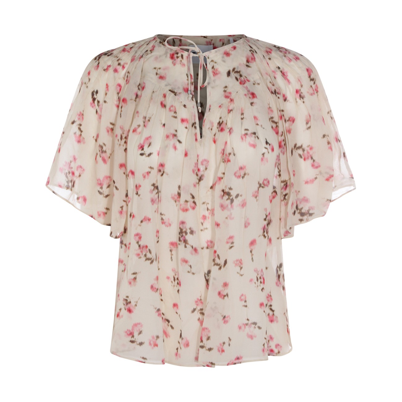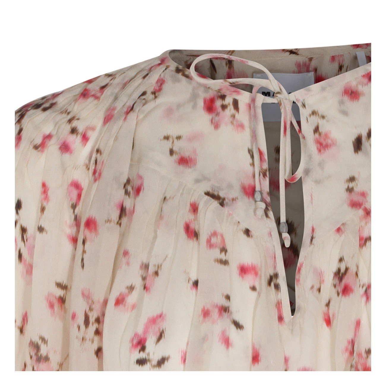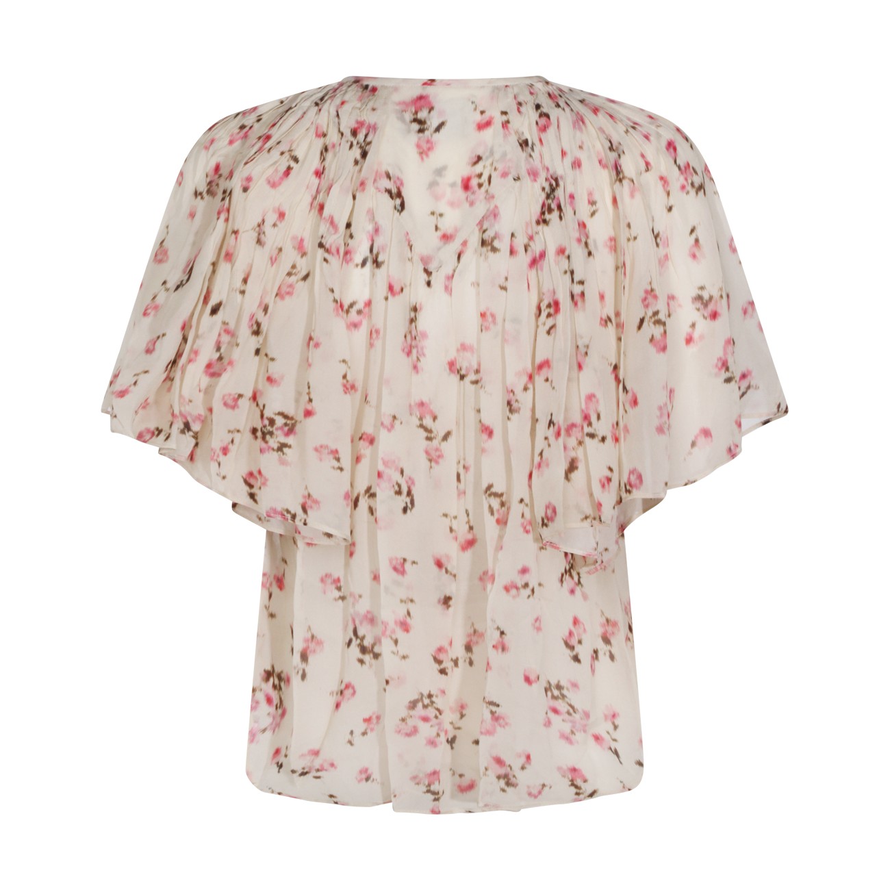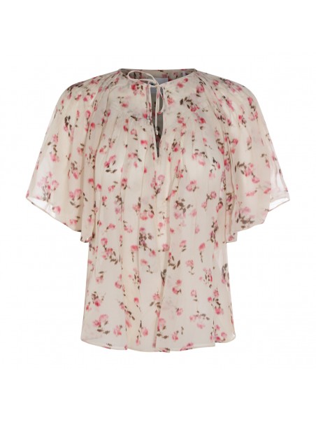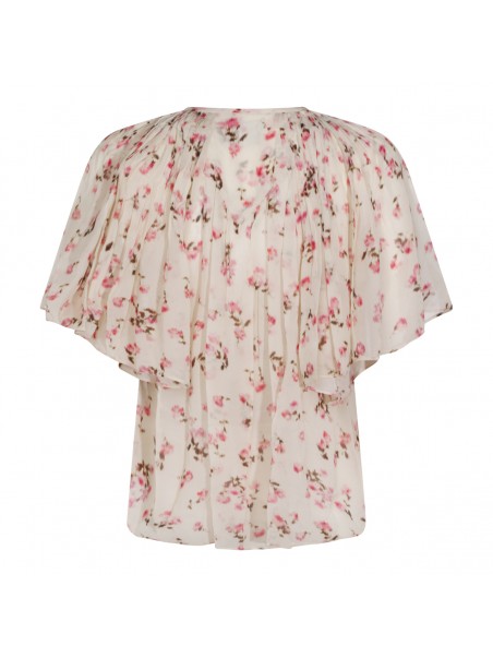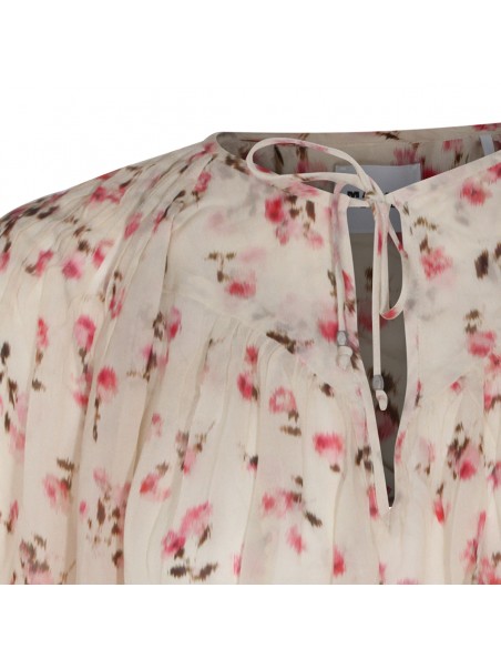 Beige viscose top from Marant Etoile featuring round collar, lace fastening, short sleeves, all over print and soft vestibility.