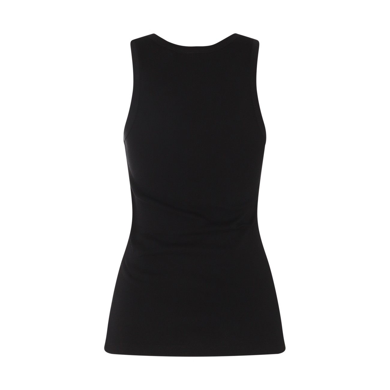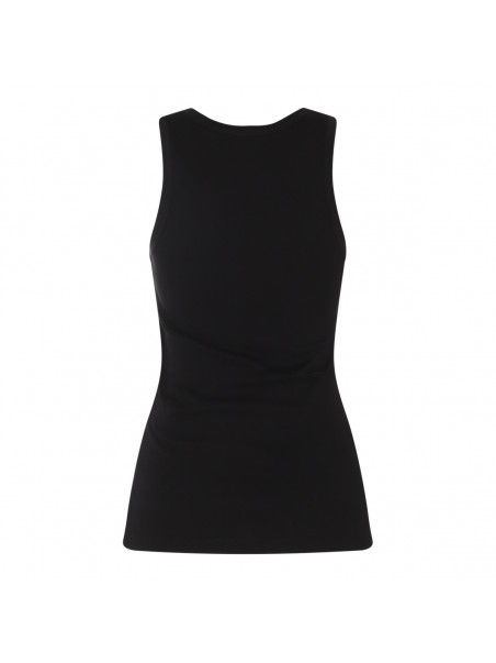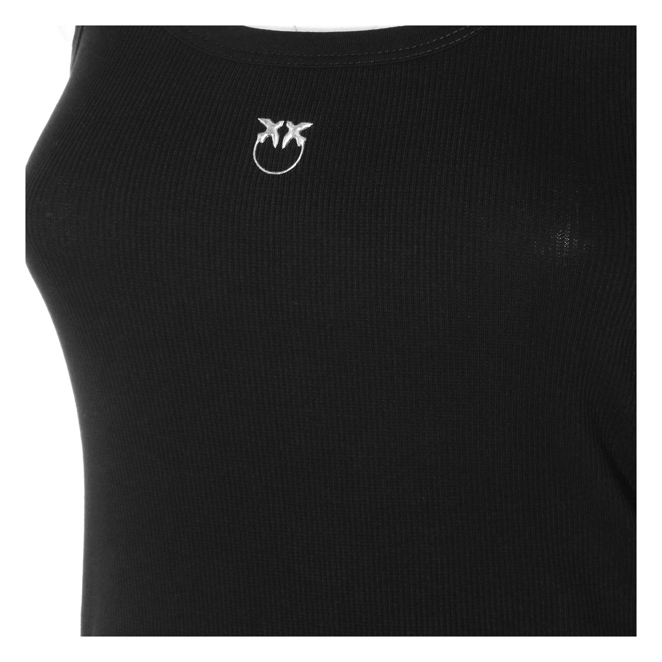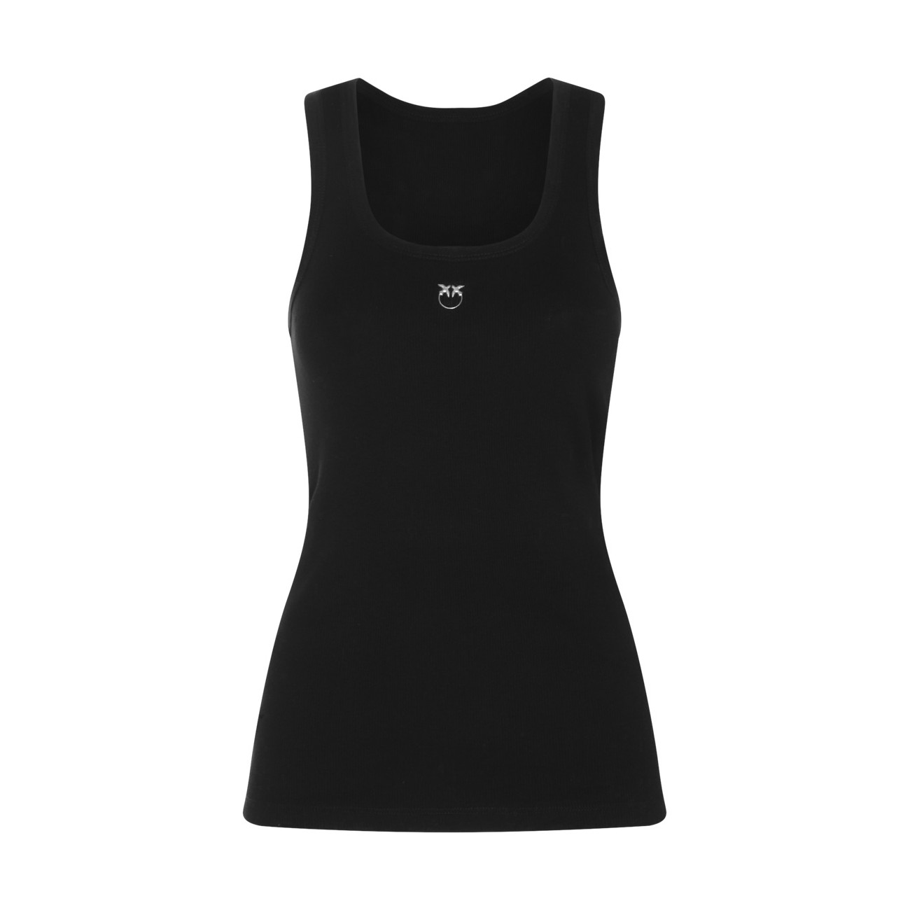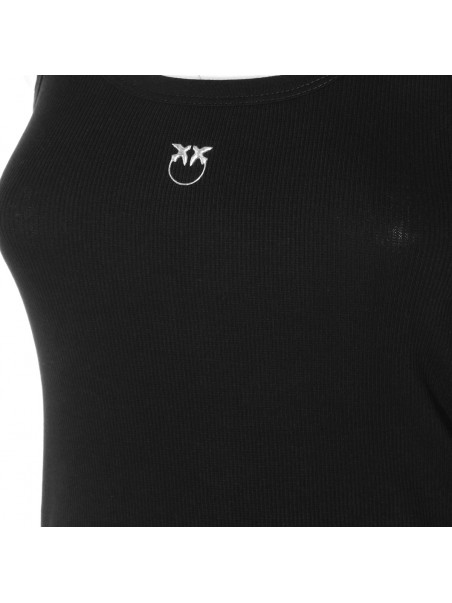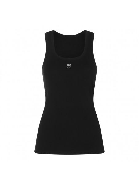 Black cotton top from Pinko featuring square neck, sleeveless, frontal logo and regular vestibility.