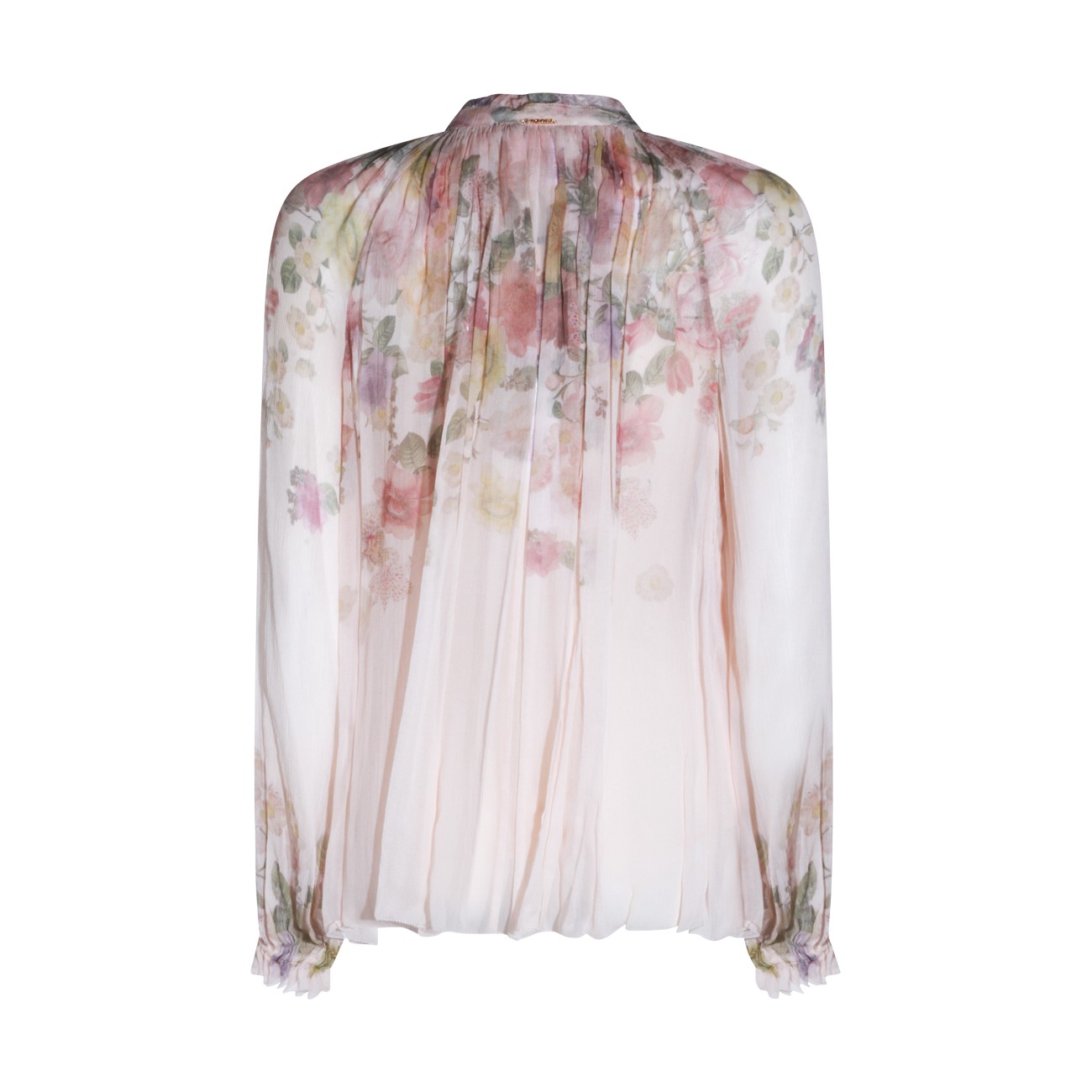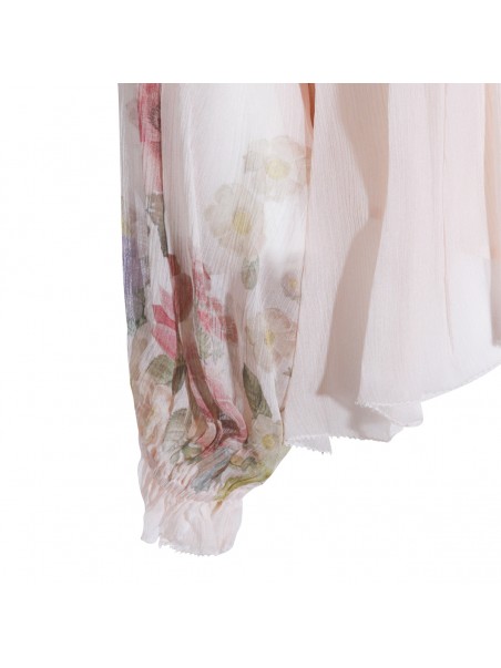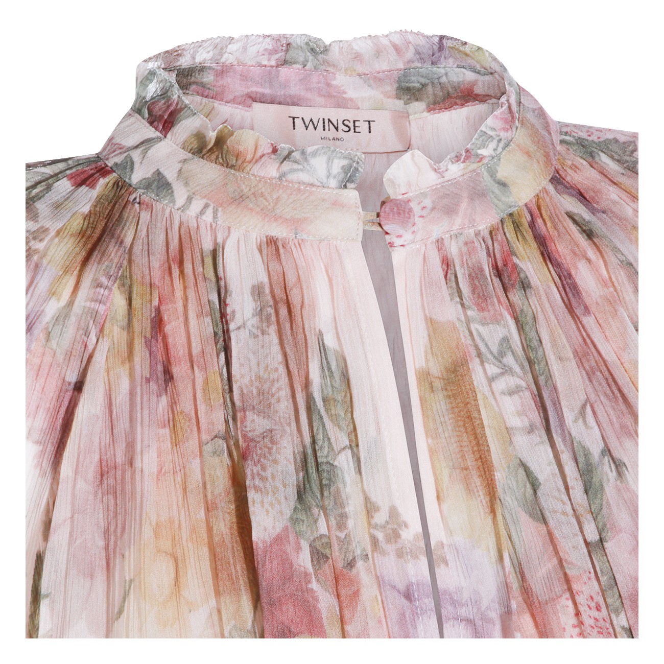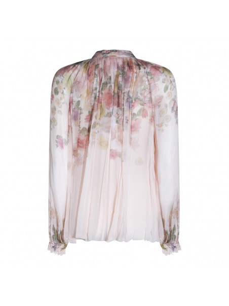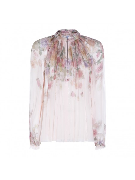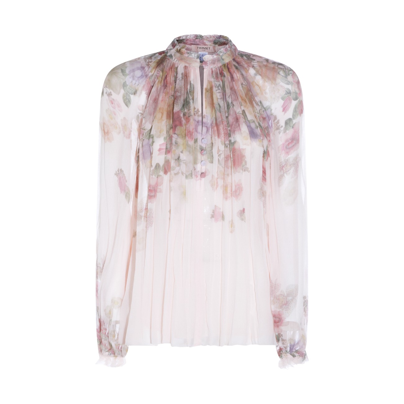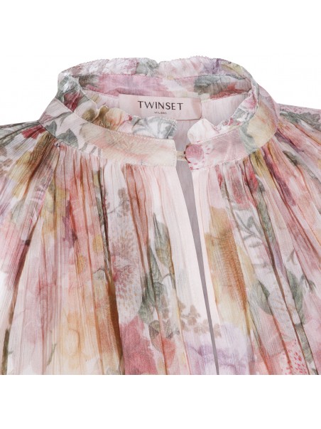 Multicolor silk top from Twinset featuring long sleeves, high collar, flower print and regular vestibility.