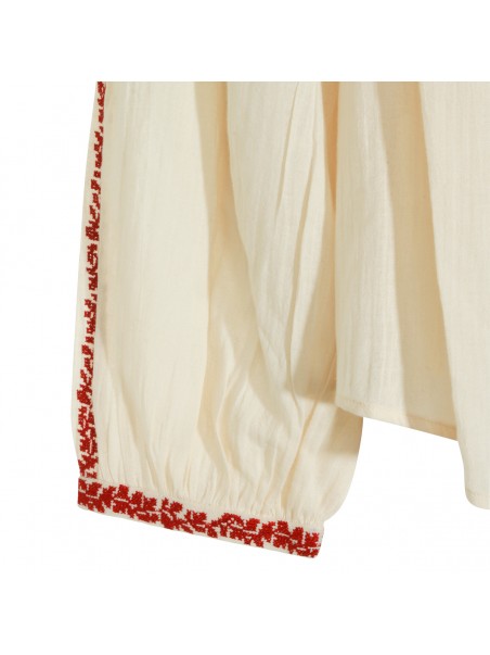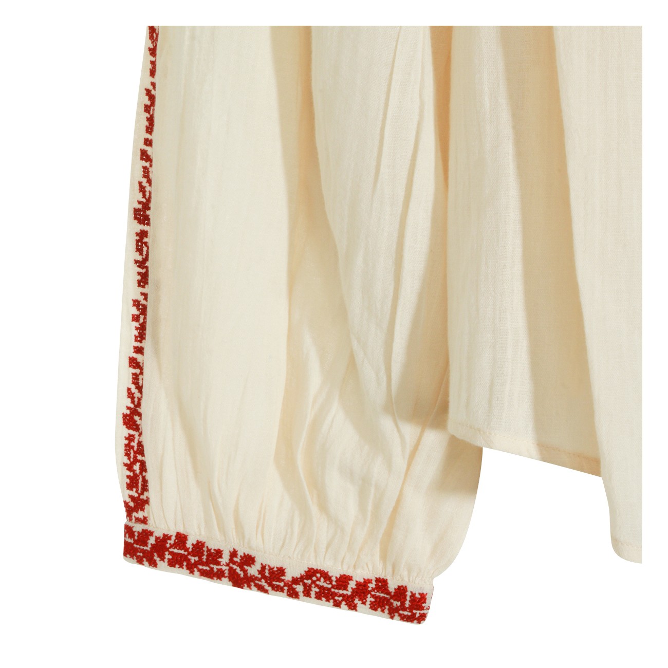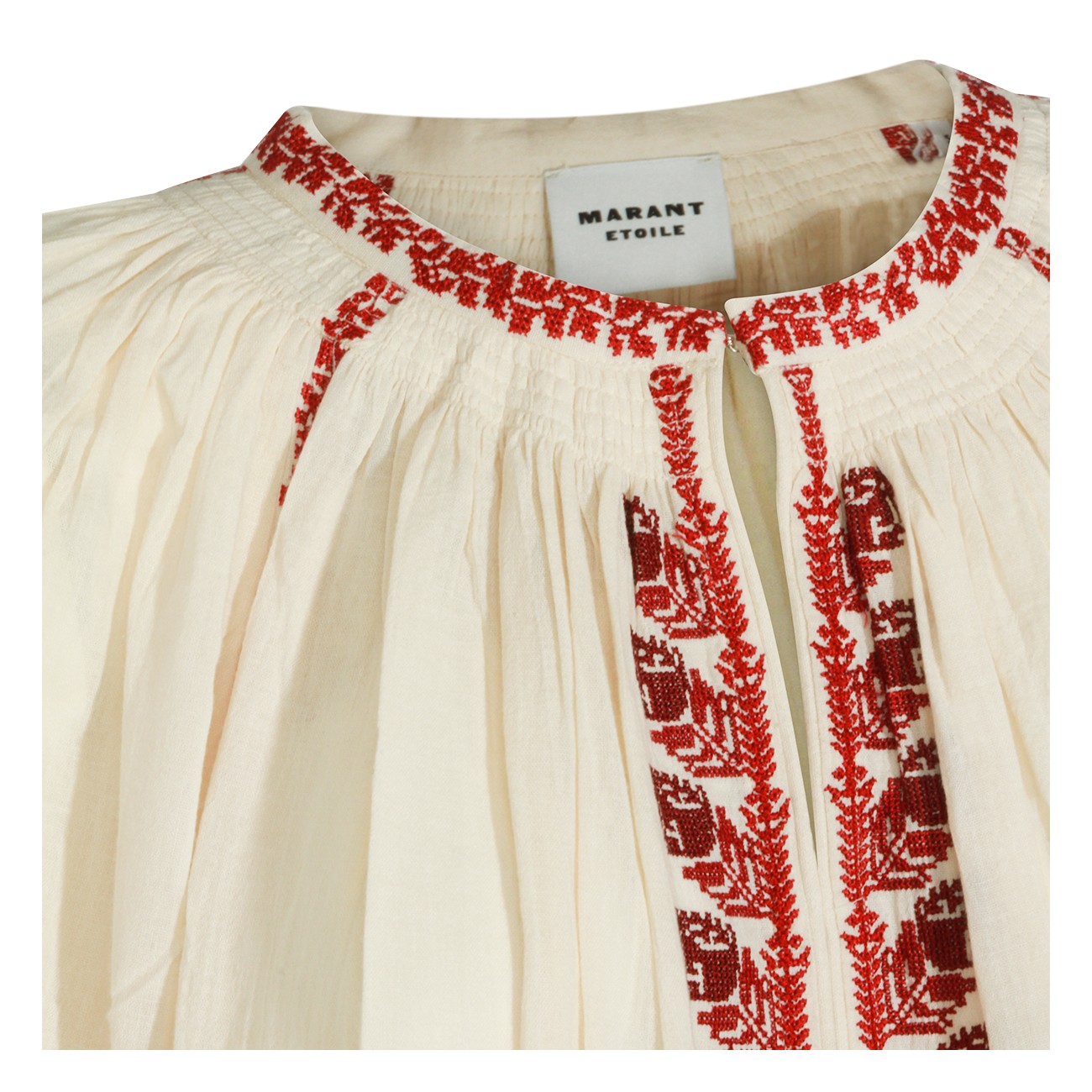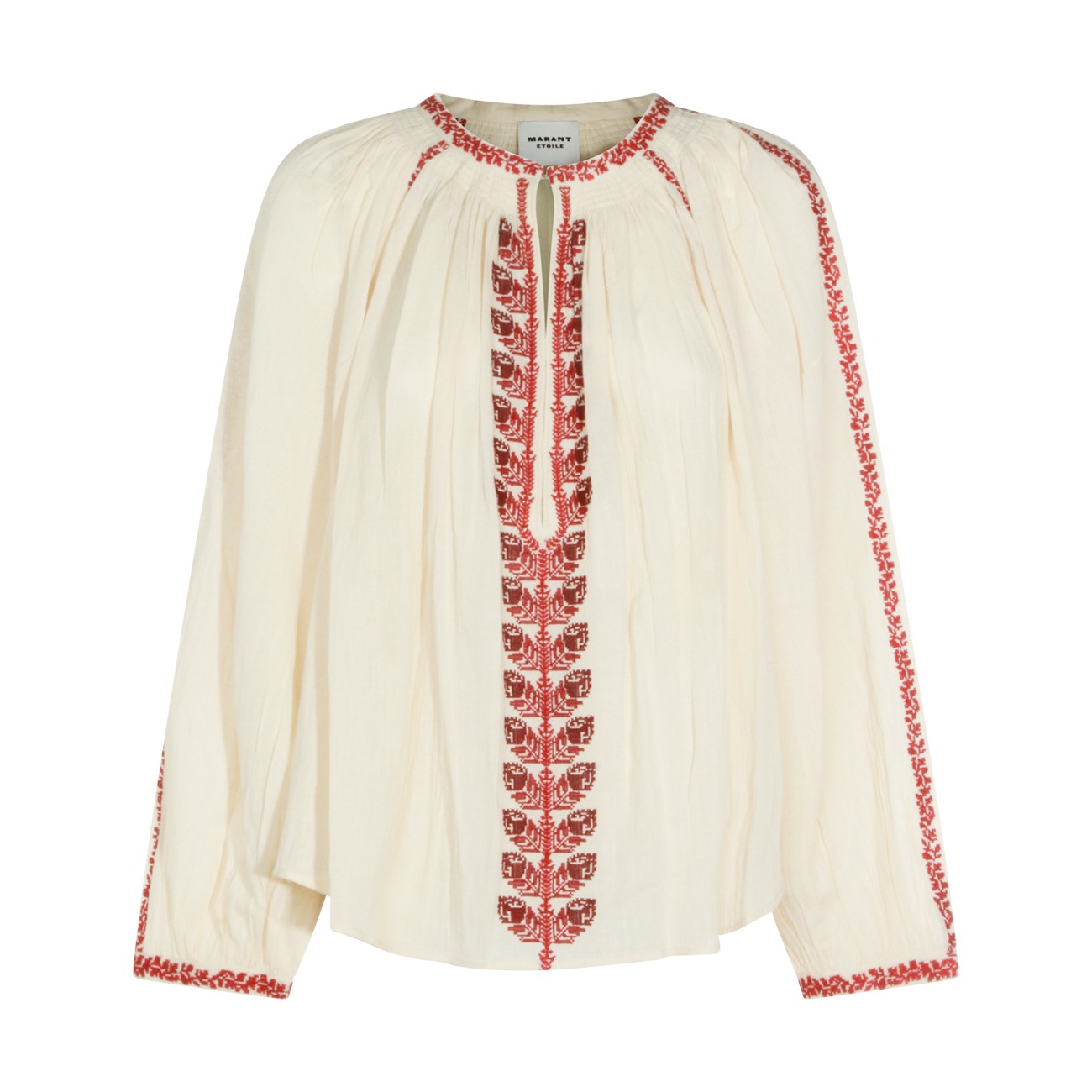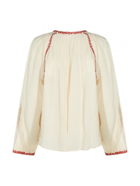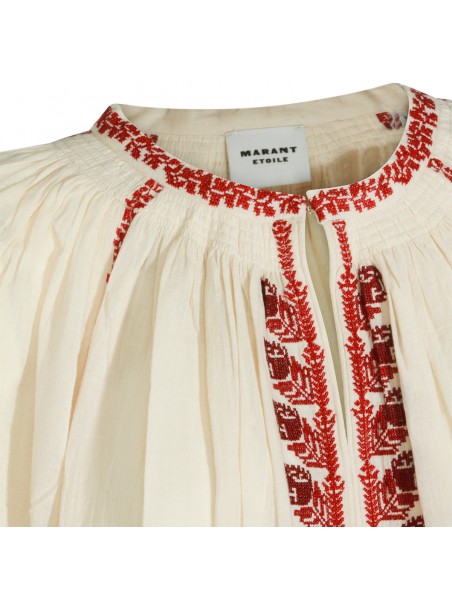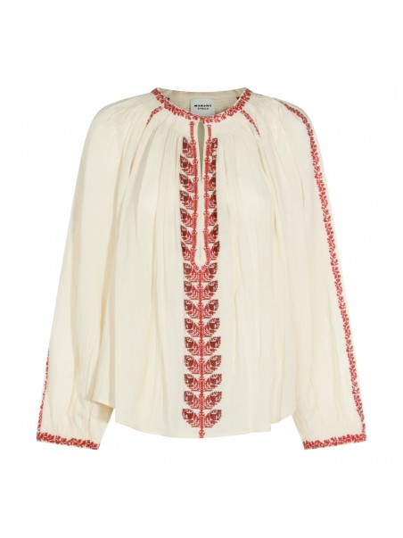Beige viscose top from Marant Etoile featuring long sleeves, round collar, frontal embellishment and regular vestibility.