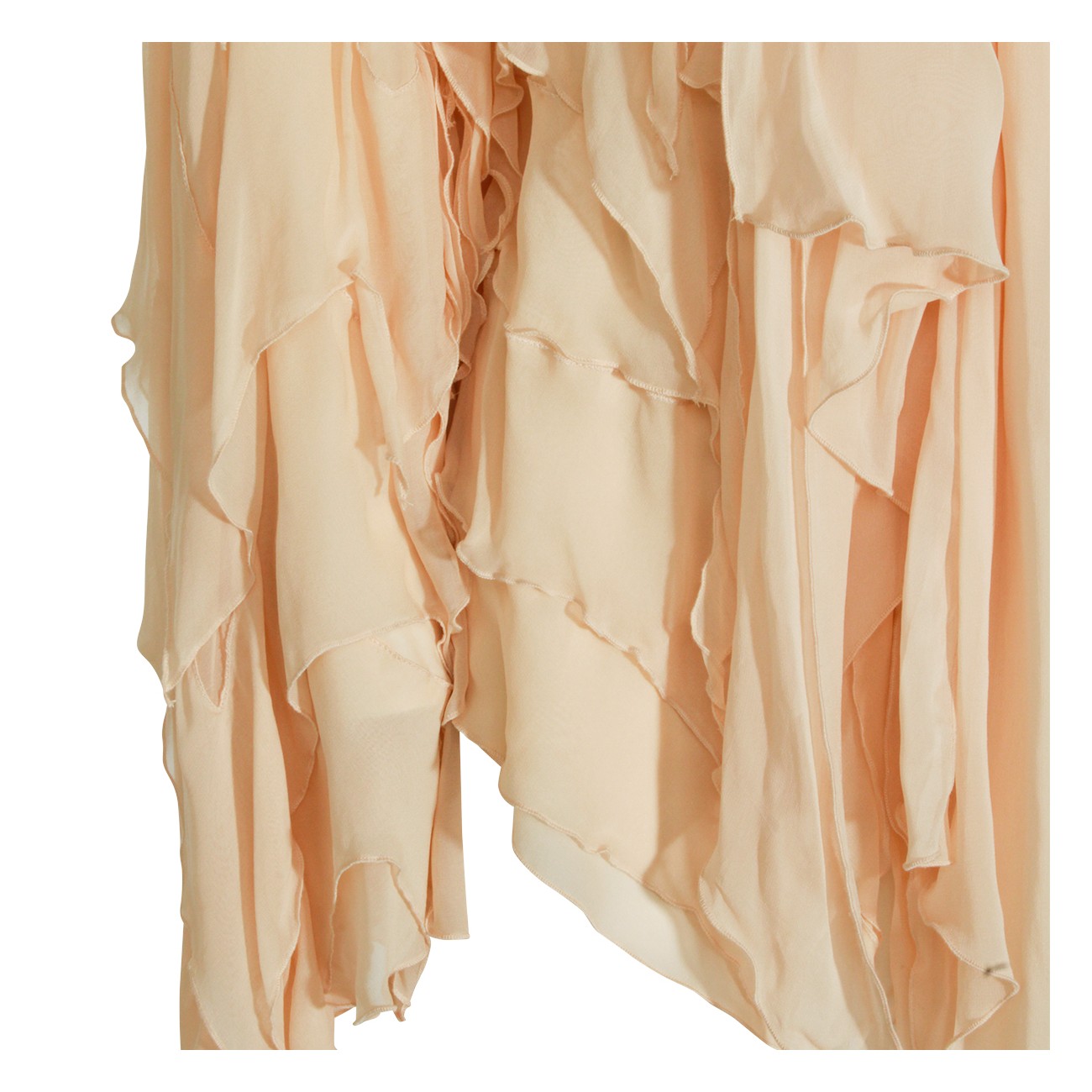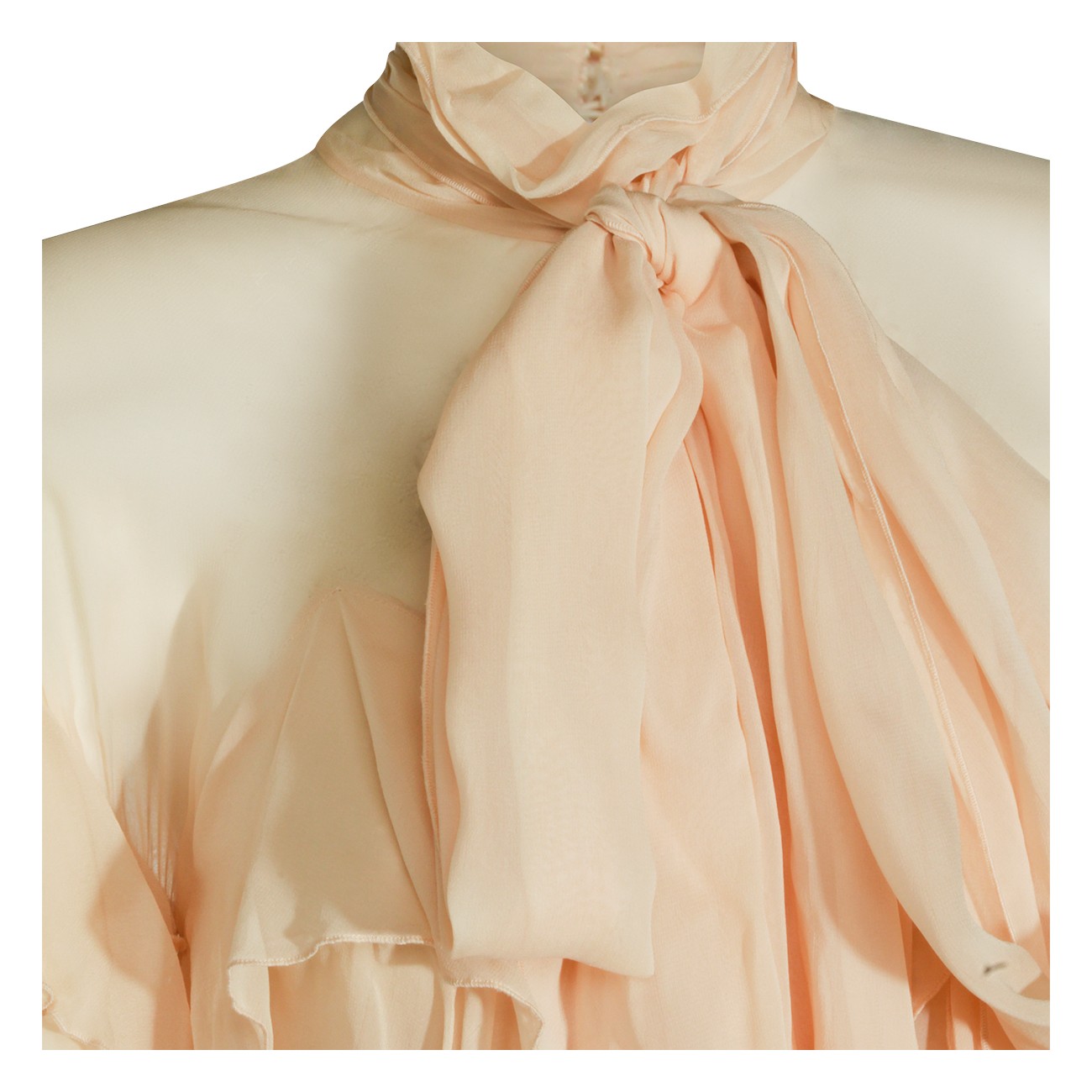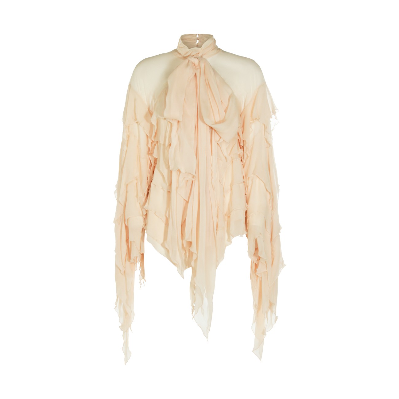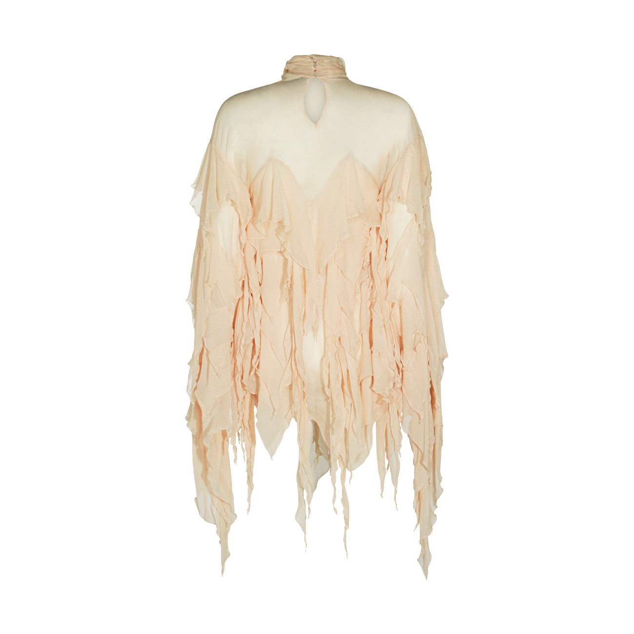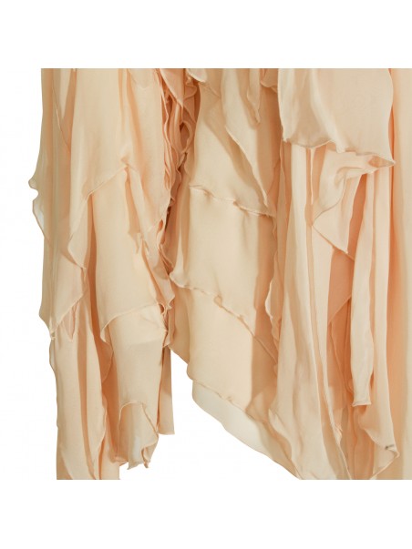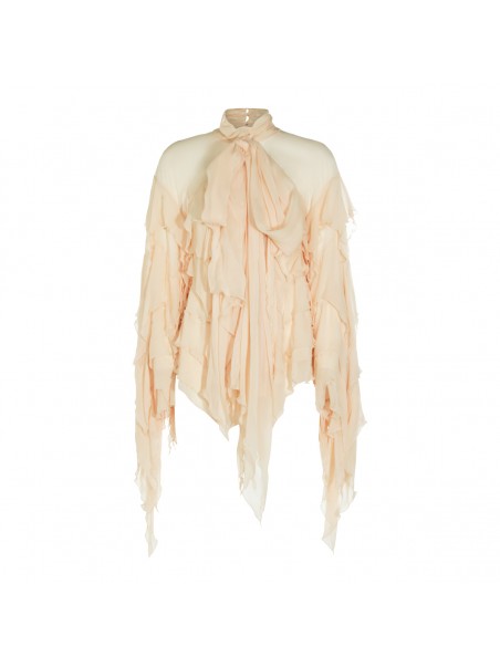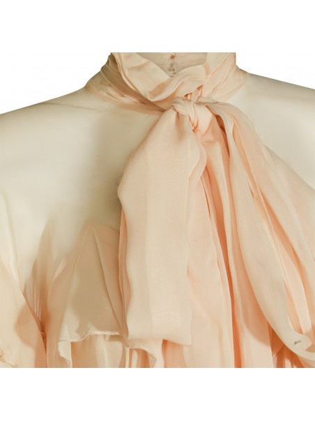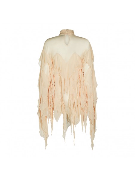 Beige top from Blumarine featuring high collar, long sleeves, all over drapes detail and back fastening.