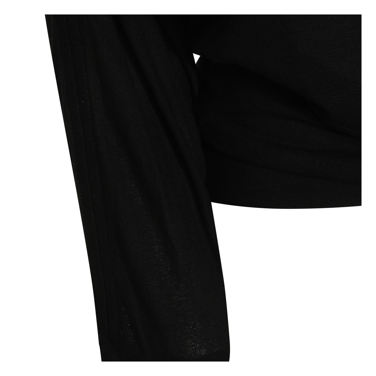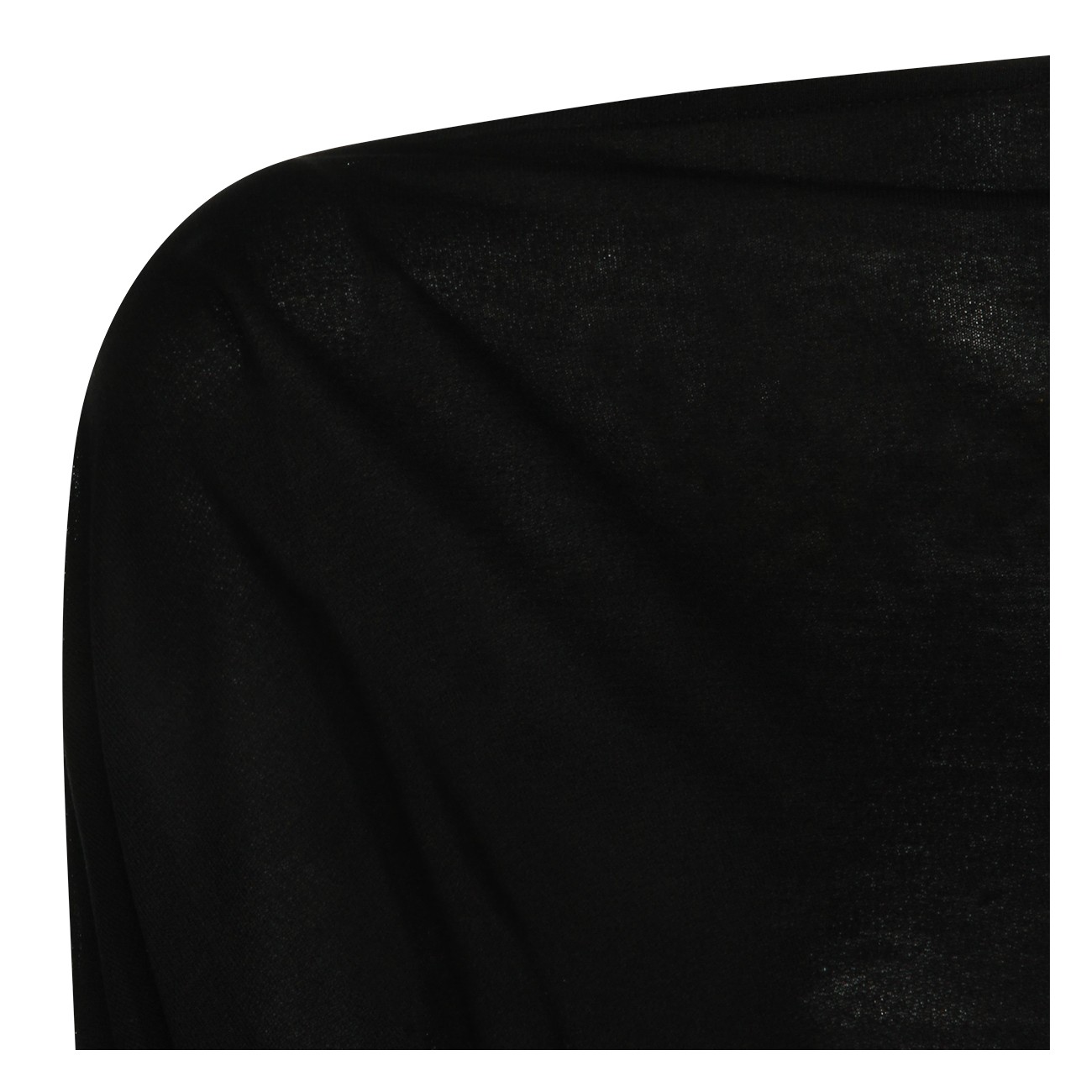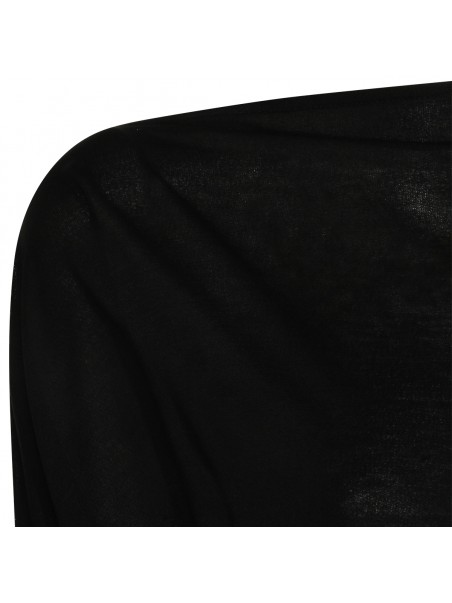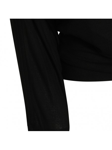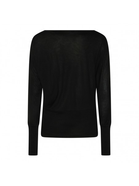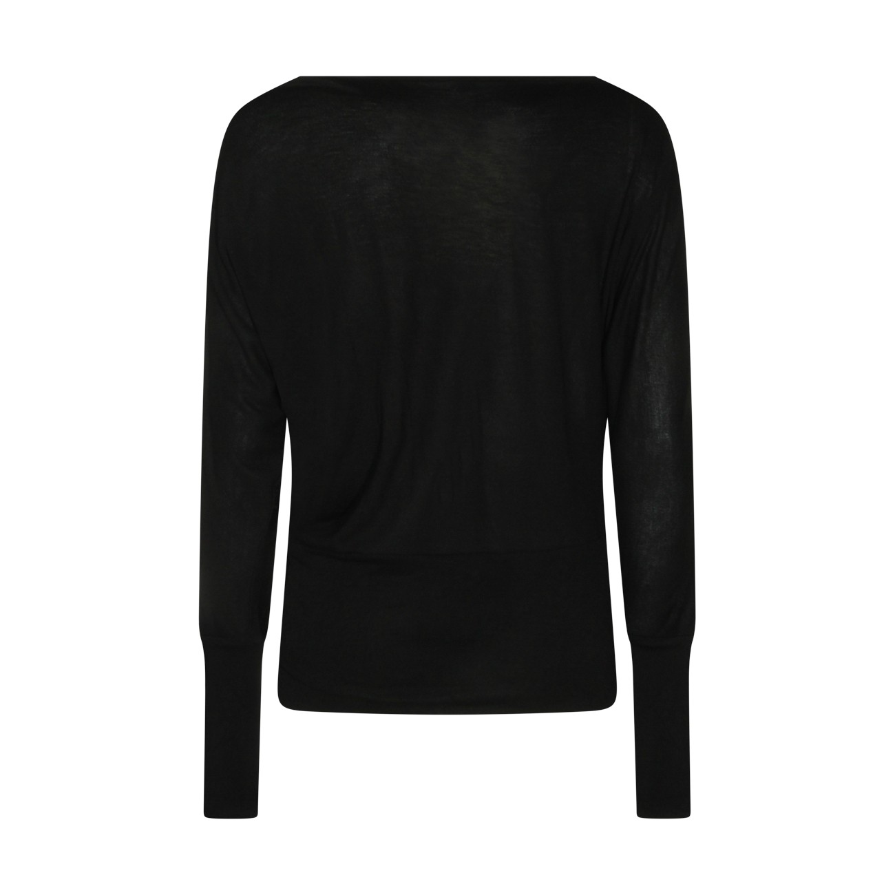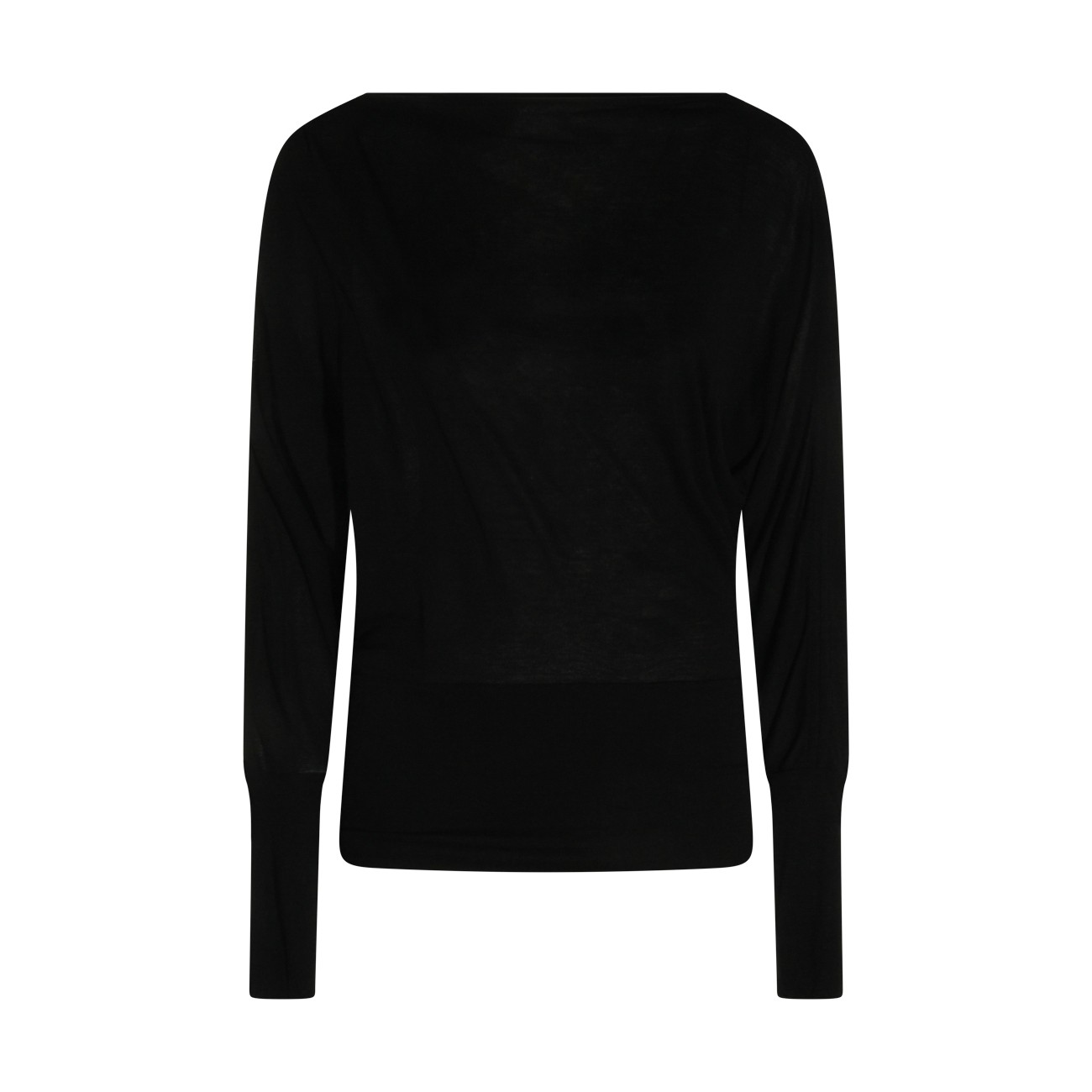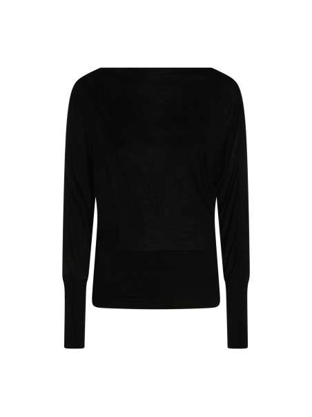 Black top from Toteme featuring straight collar, long sleeves, ribbed cuffs and hem and soft vestibility.