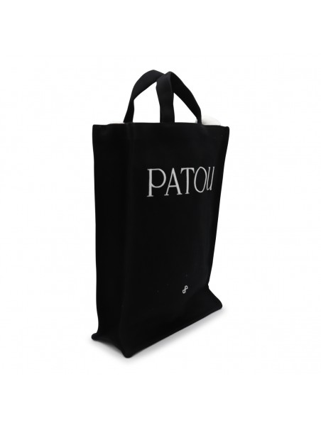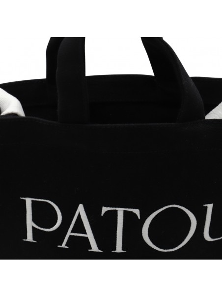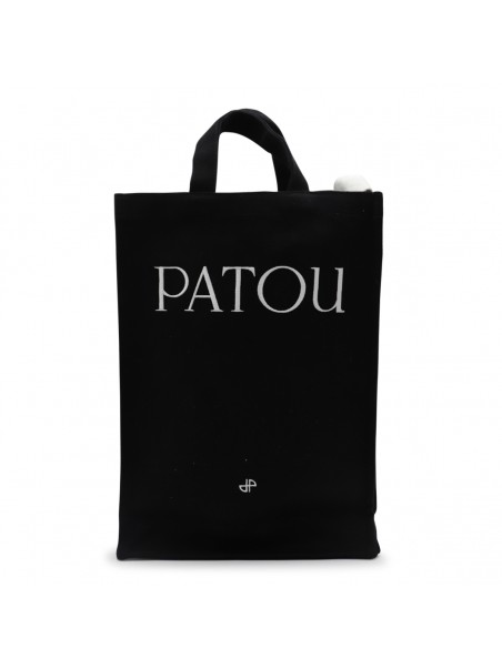 Black cotton Vertical tote from Patou featuring handles, frontal logo and adjustable straps and inside pockets.