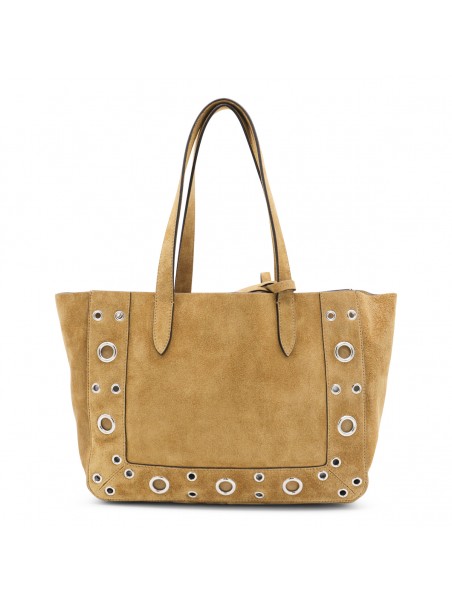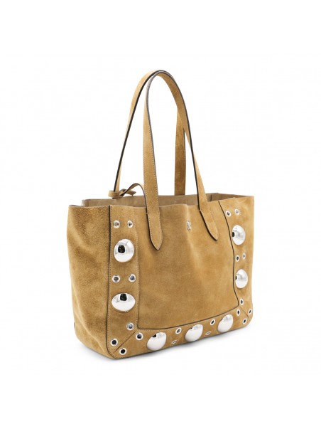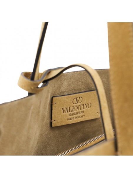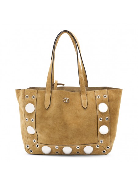 Beige Nellcote leather totes from Valentino Garavani featuring top handles, upper fastening, silver hardware and logo.