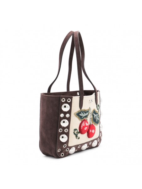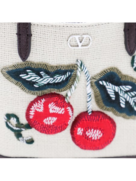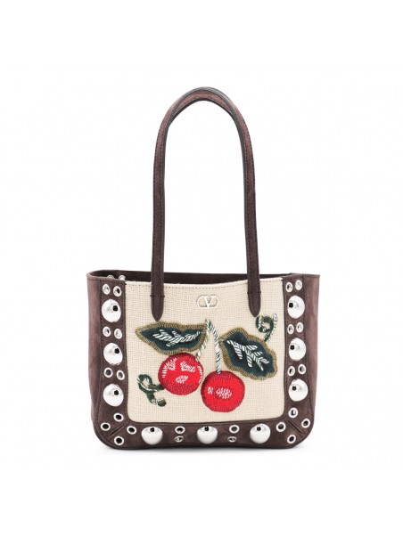 Multicolor leather Nellcote totes from Valentino Garavani featuring top handles, frontal embroidered, logo, silver tone hardware and inside pocket.