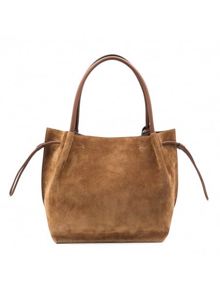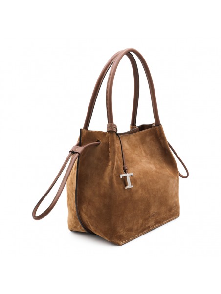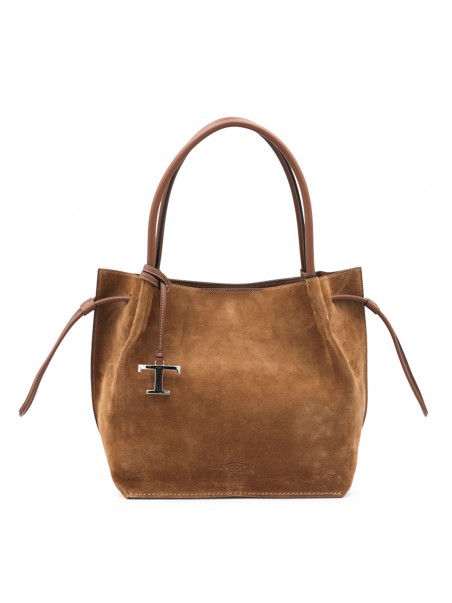 Brown leather totes from Tod's featuring top handles, upper fastening, silver tone hardware and lateral drawstrings.