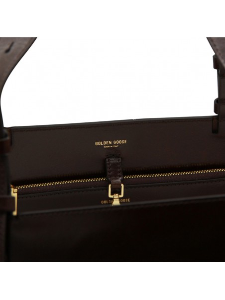 Brown cotton totes from Golden Goose featuring top handles, upper fastening, frontal print, adjustable strap and pocket.