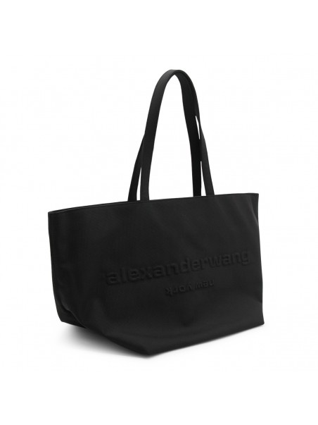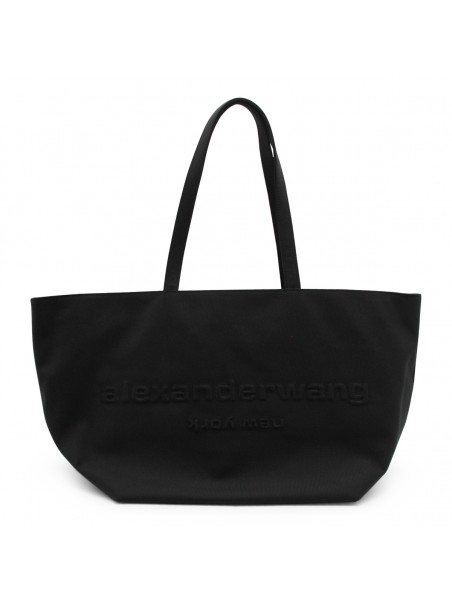 Black Punch tote from Alexande Wang featuring top handle, frontal logo, lace closure, main compartment and internal zipped pocket.