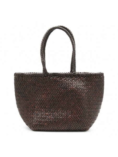 Dark Brown leather Grace small tote from Dragon Diffusion featuring top handles, leather and main compartment.