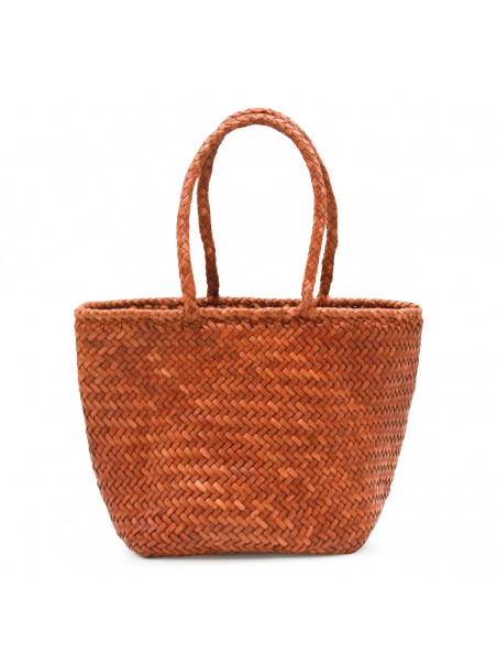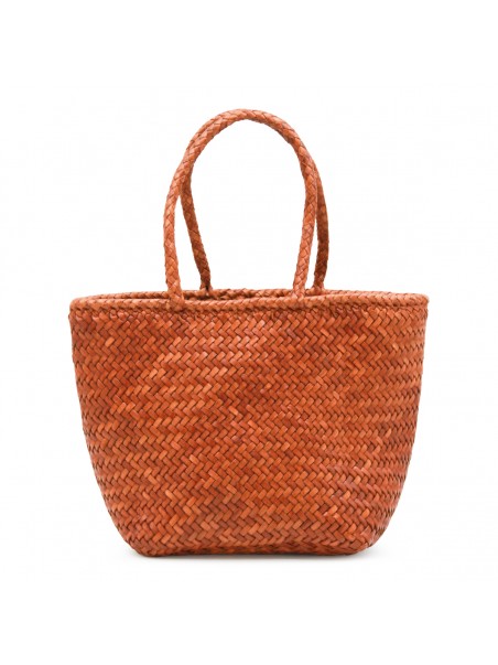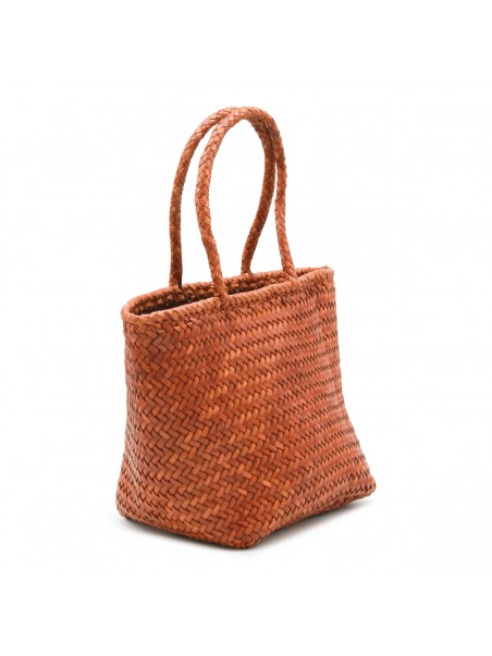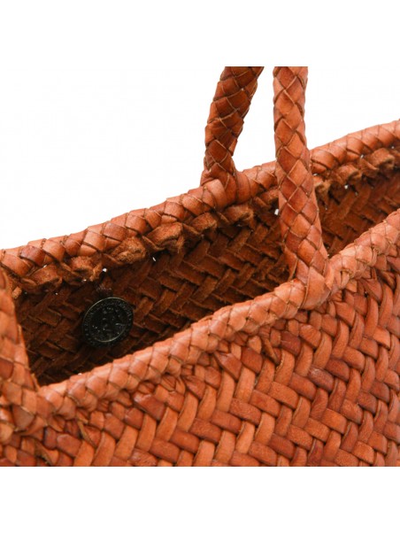 Dark orange leather Grace small tote from Dragon Diffusion featuring top handles, hand woven and main compartment.