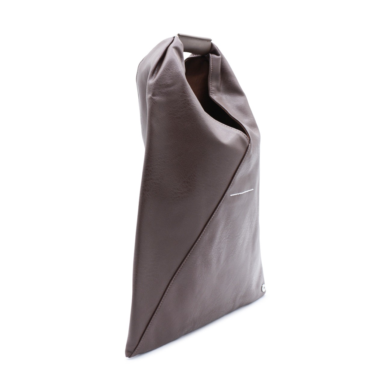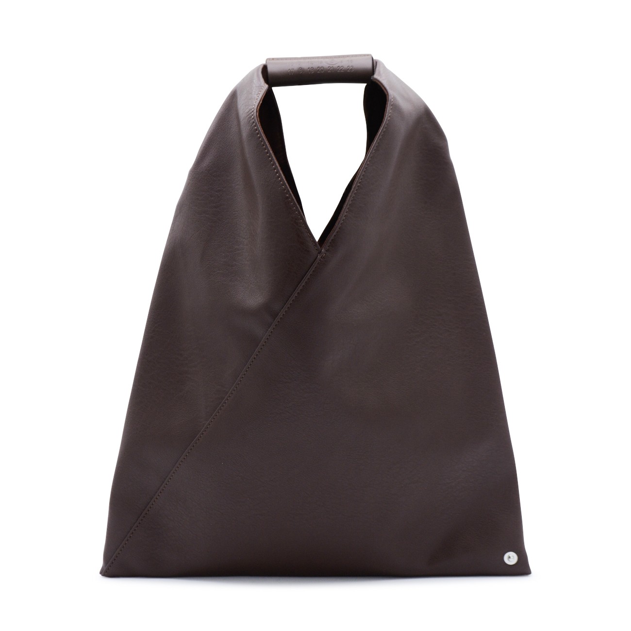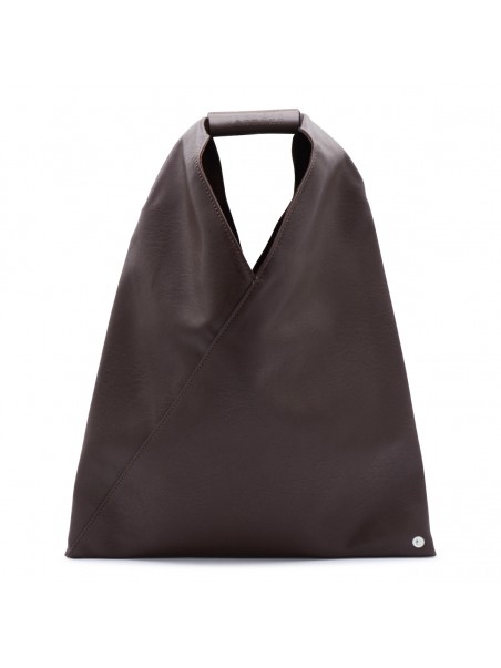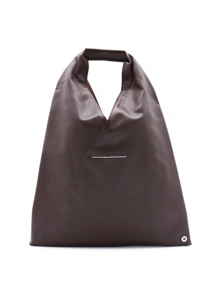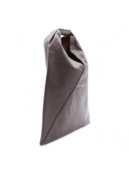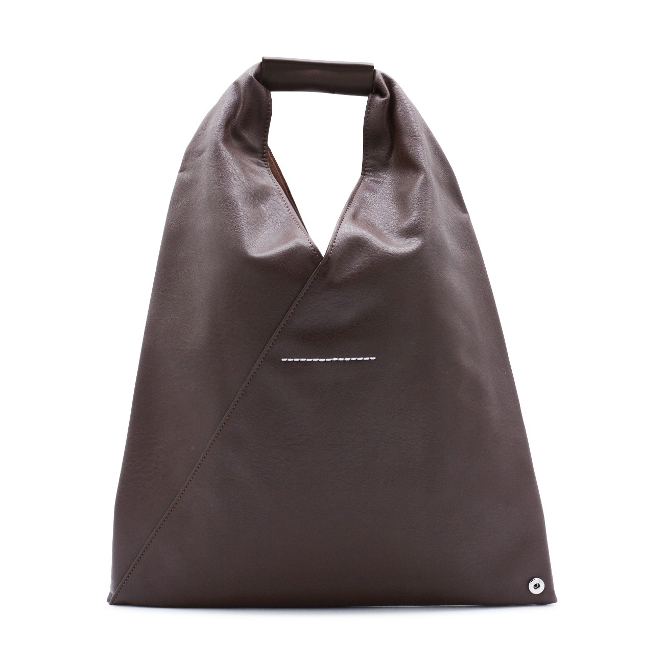 Dark brown totes from Mm6 Maison Margiela featuring top handle, upper fastening with button and silver tone hardware.