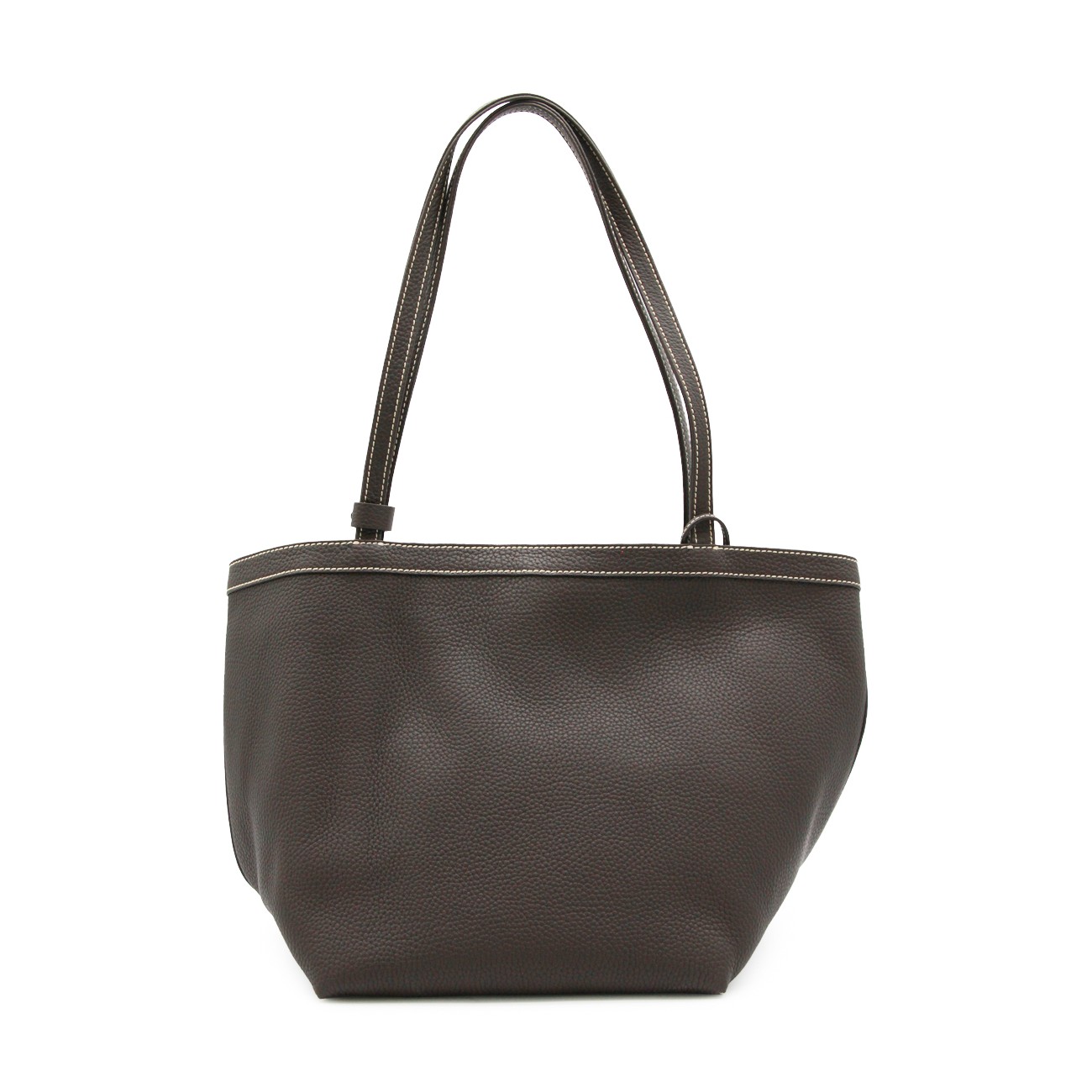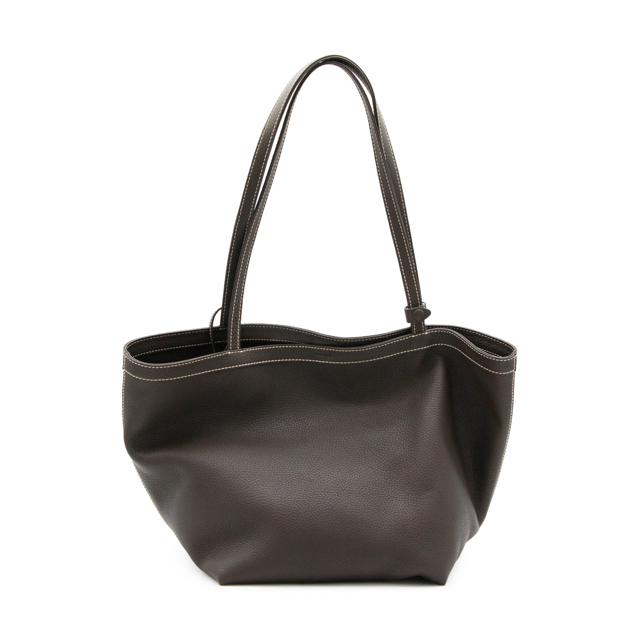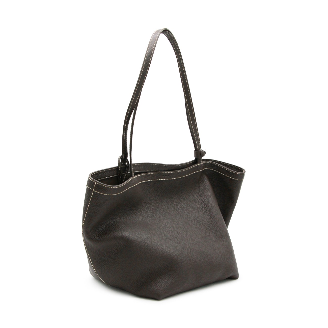 DARK BROWN LEATHER PARK TOTE THREE STICH