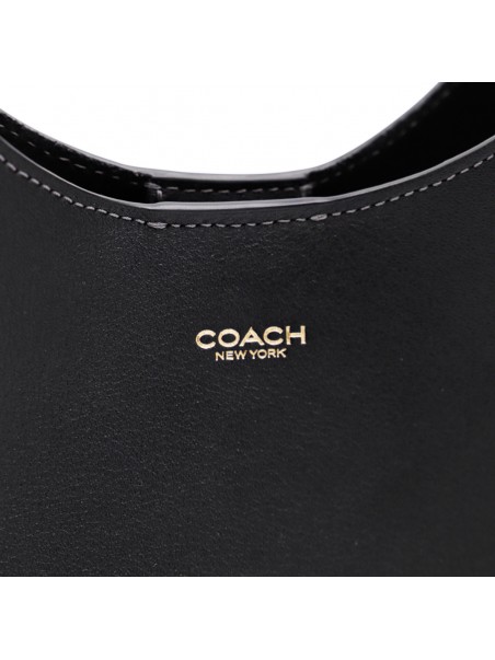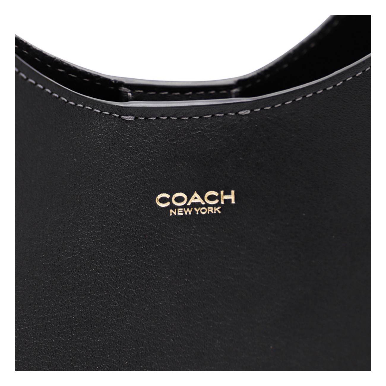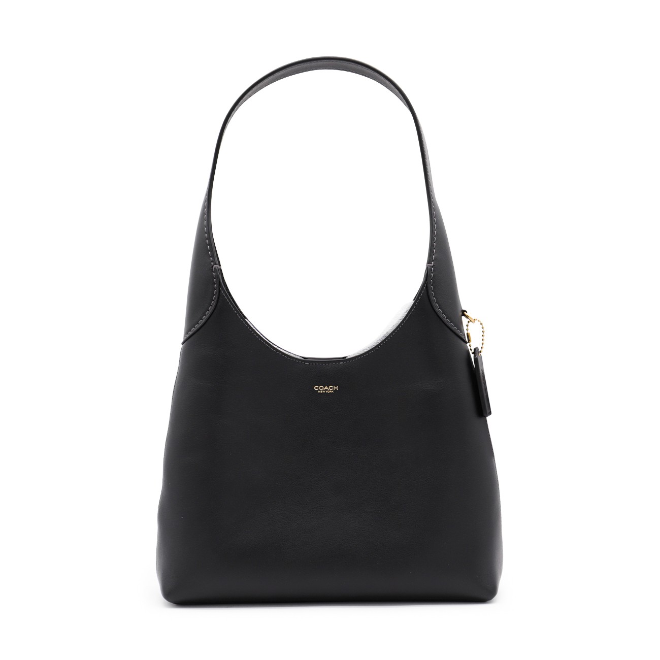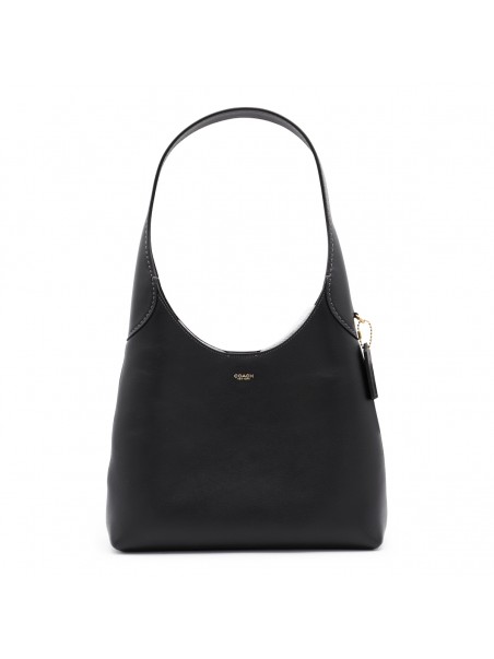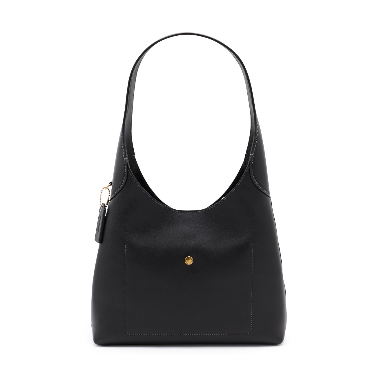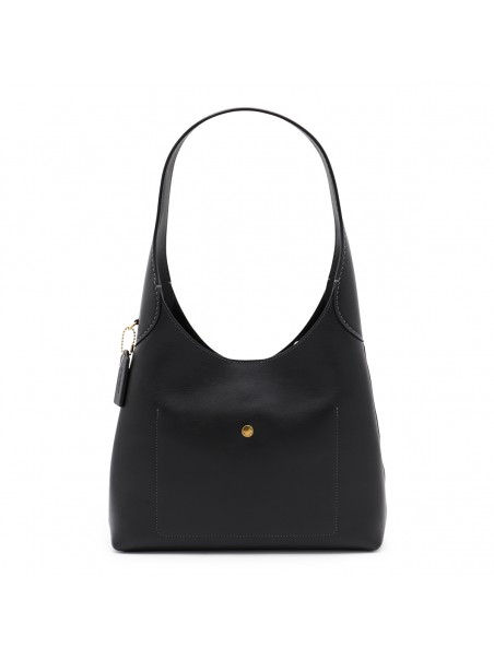 Black leather Brooklyn shoulder bag 28 from Coach featuring top handle, single compartment and frontal logo.