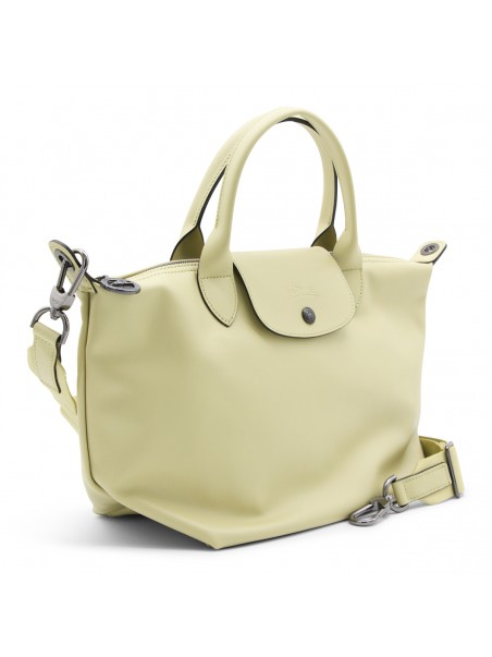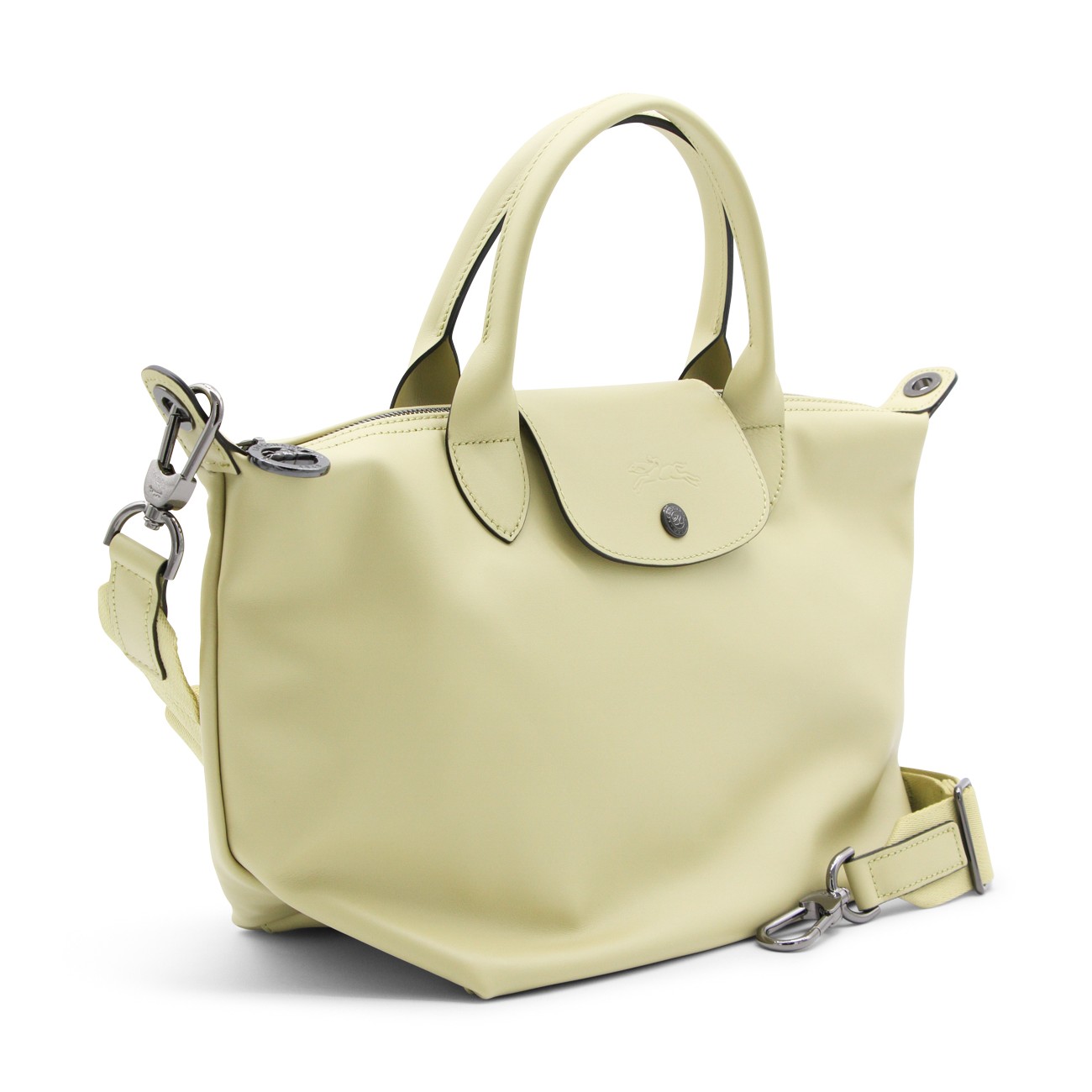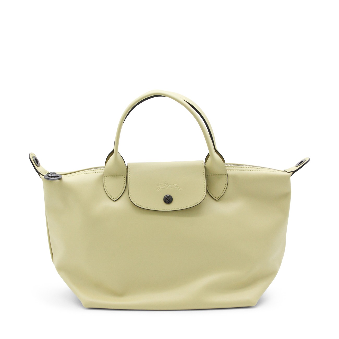 Pistachio Le Pliage Energy - Sac Man S tote from Longchamp featuring top handles, foldover top with snap closure, zip fastening, foldable design, leather details, internal zipped pocket and black hardware.