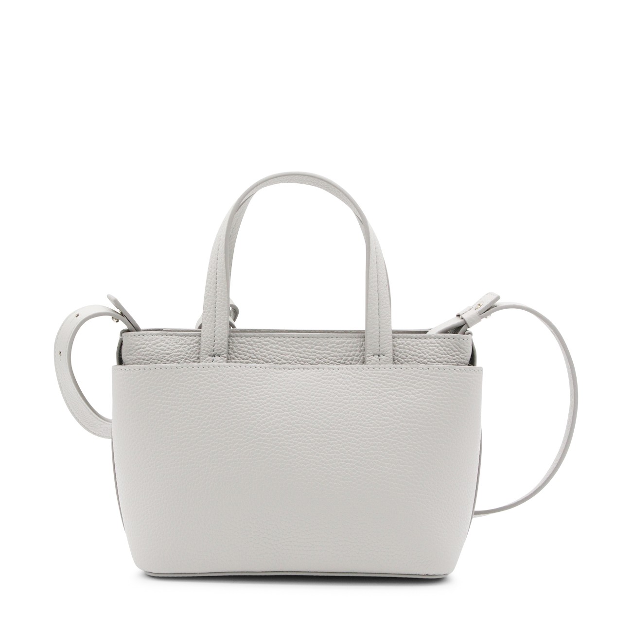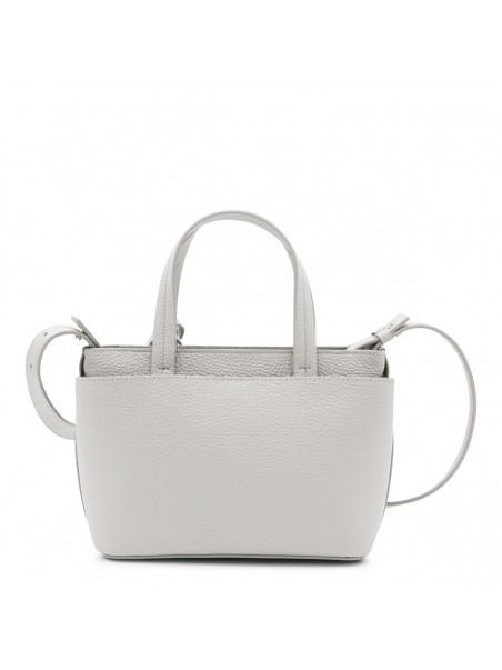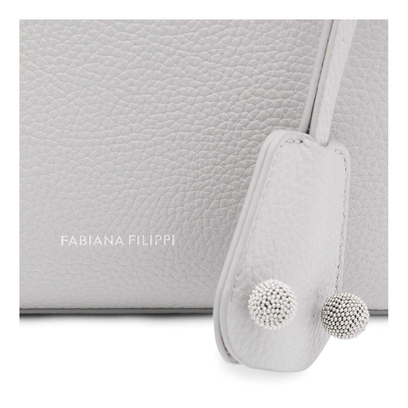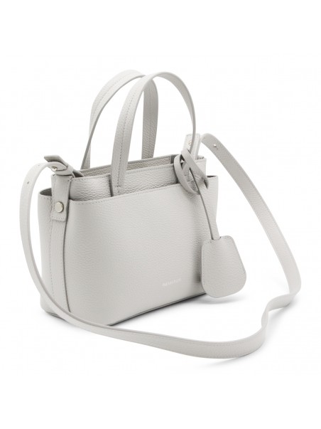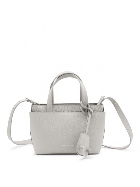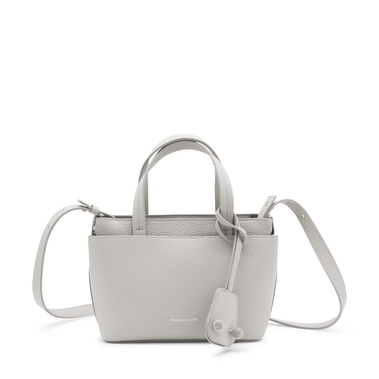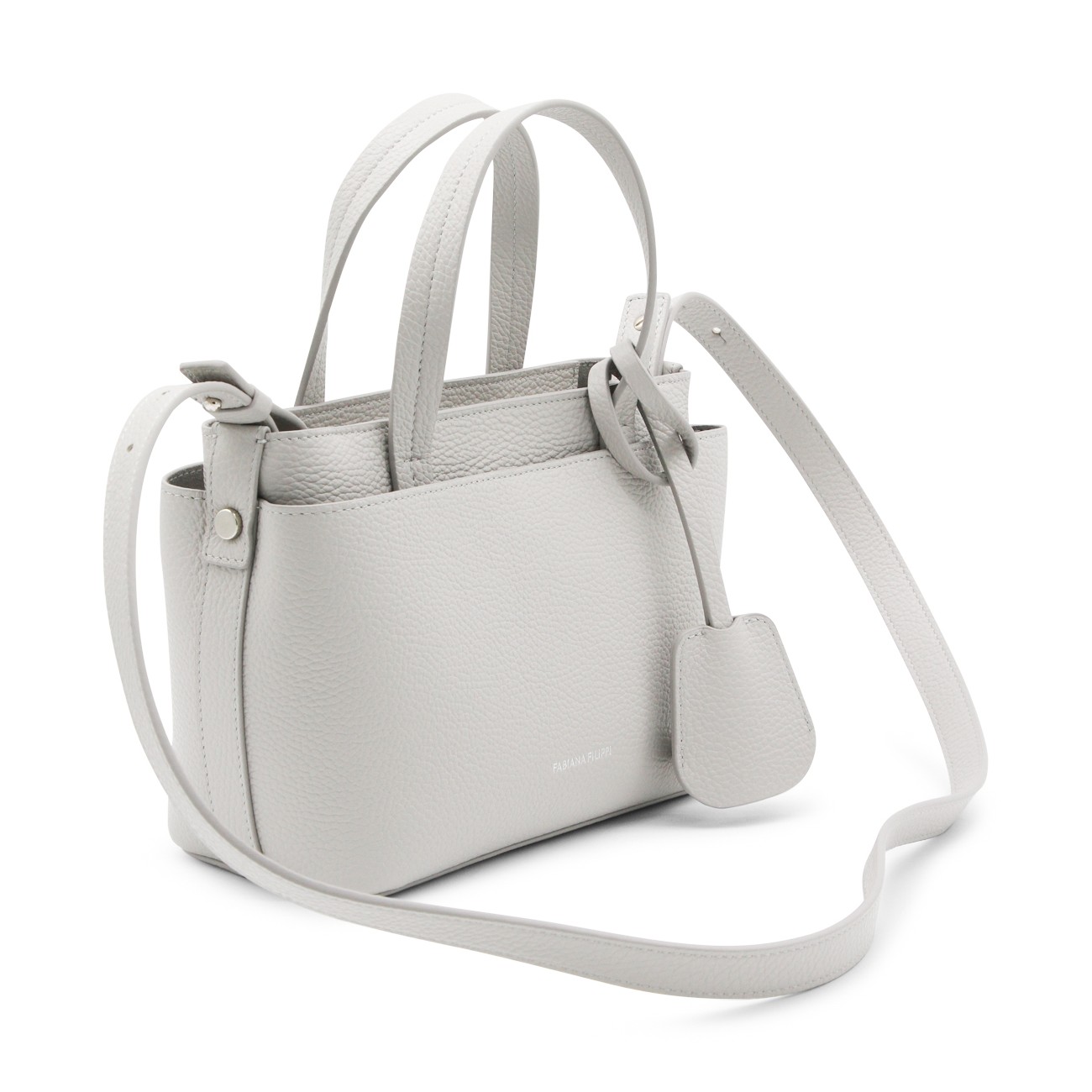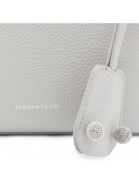 Grey leather tote from Fabiana Filippi featuring top handles, removable strap, main compartment and frontal logo.