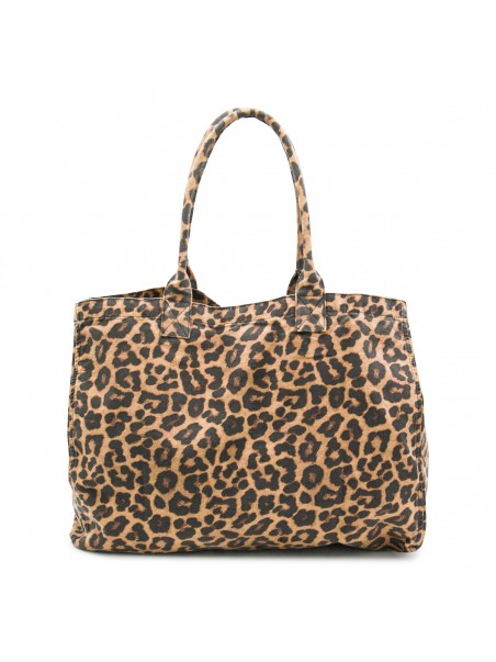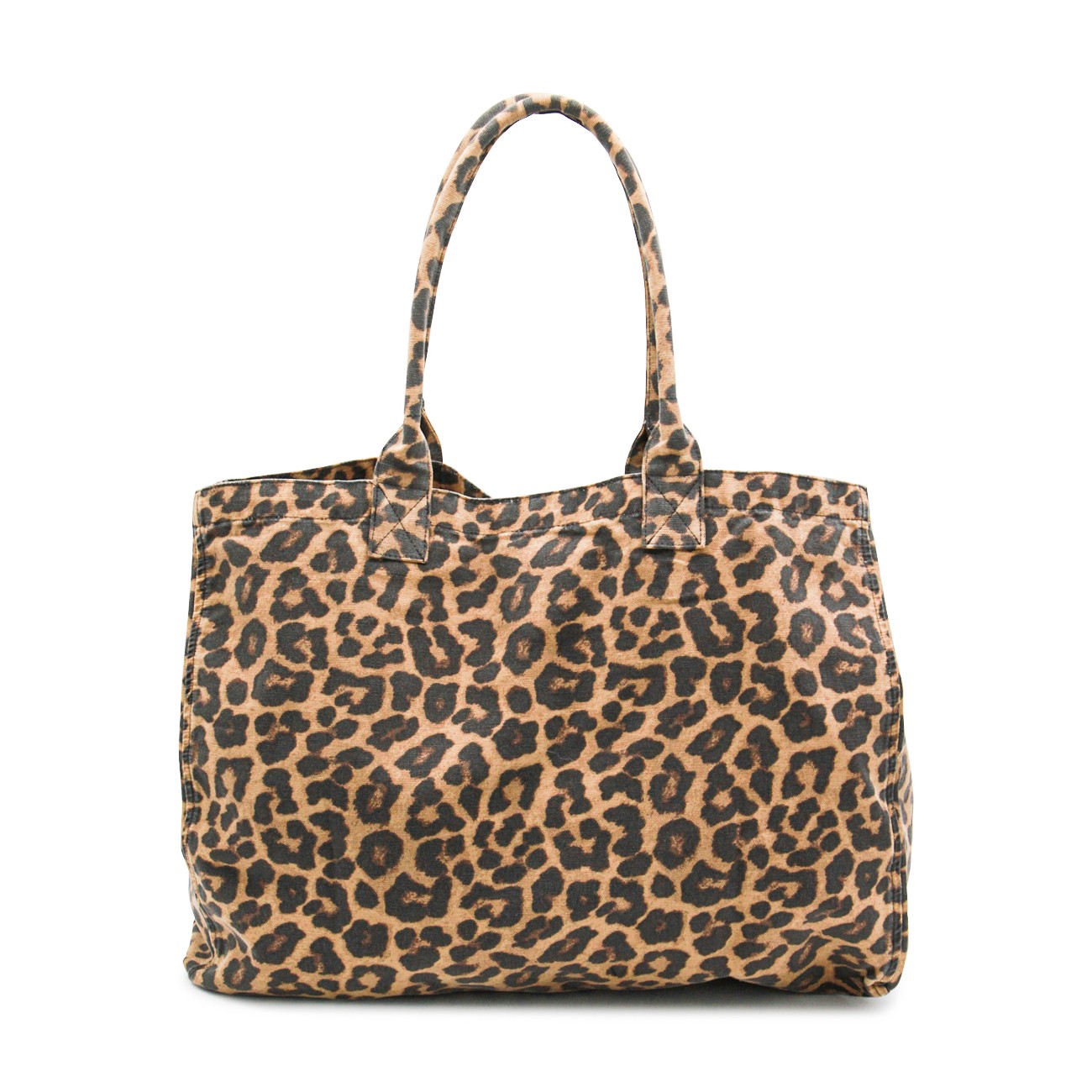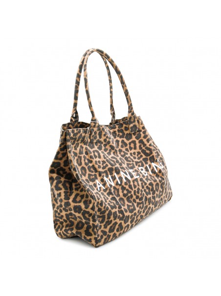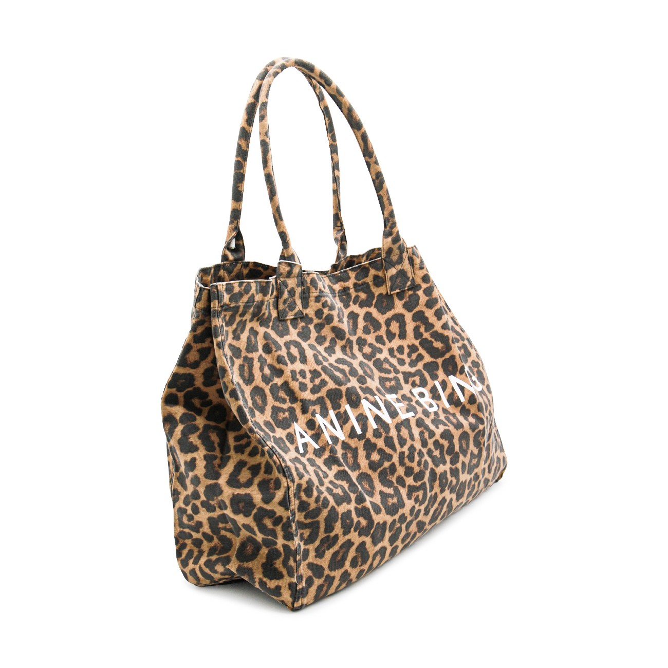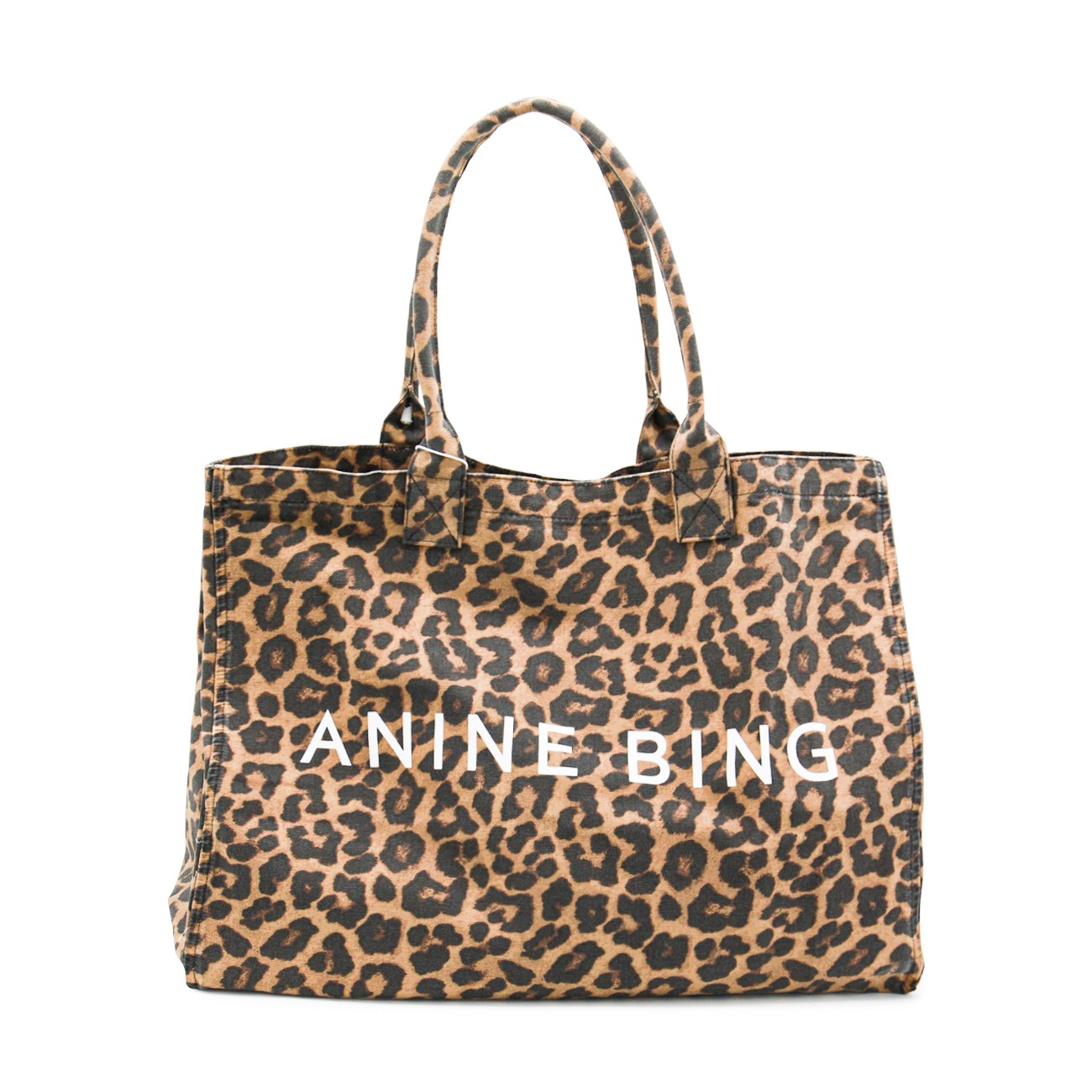 Leopard cotton Leo Canvas tote from Anine Bing featuring top handles, frontal logo and animal print.