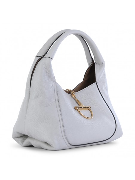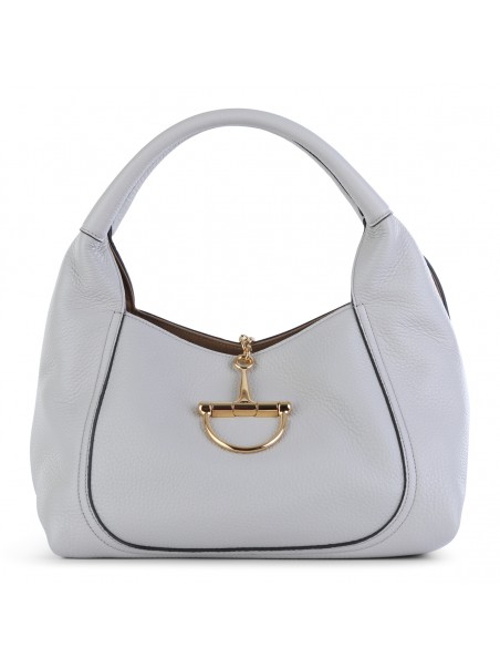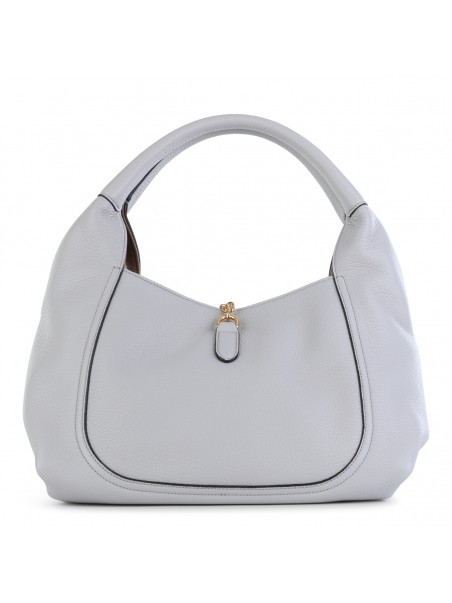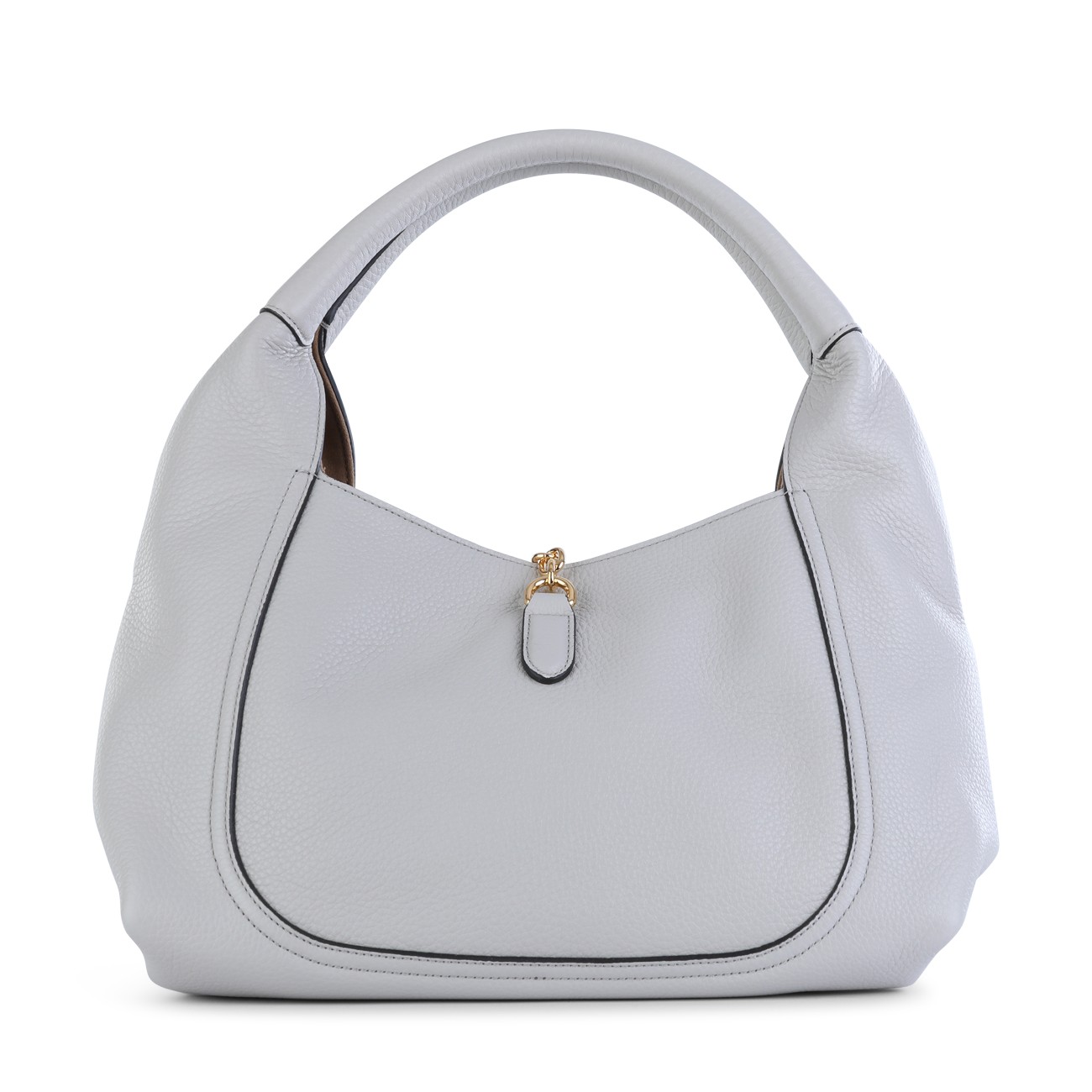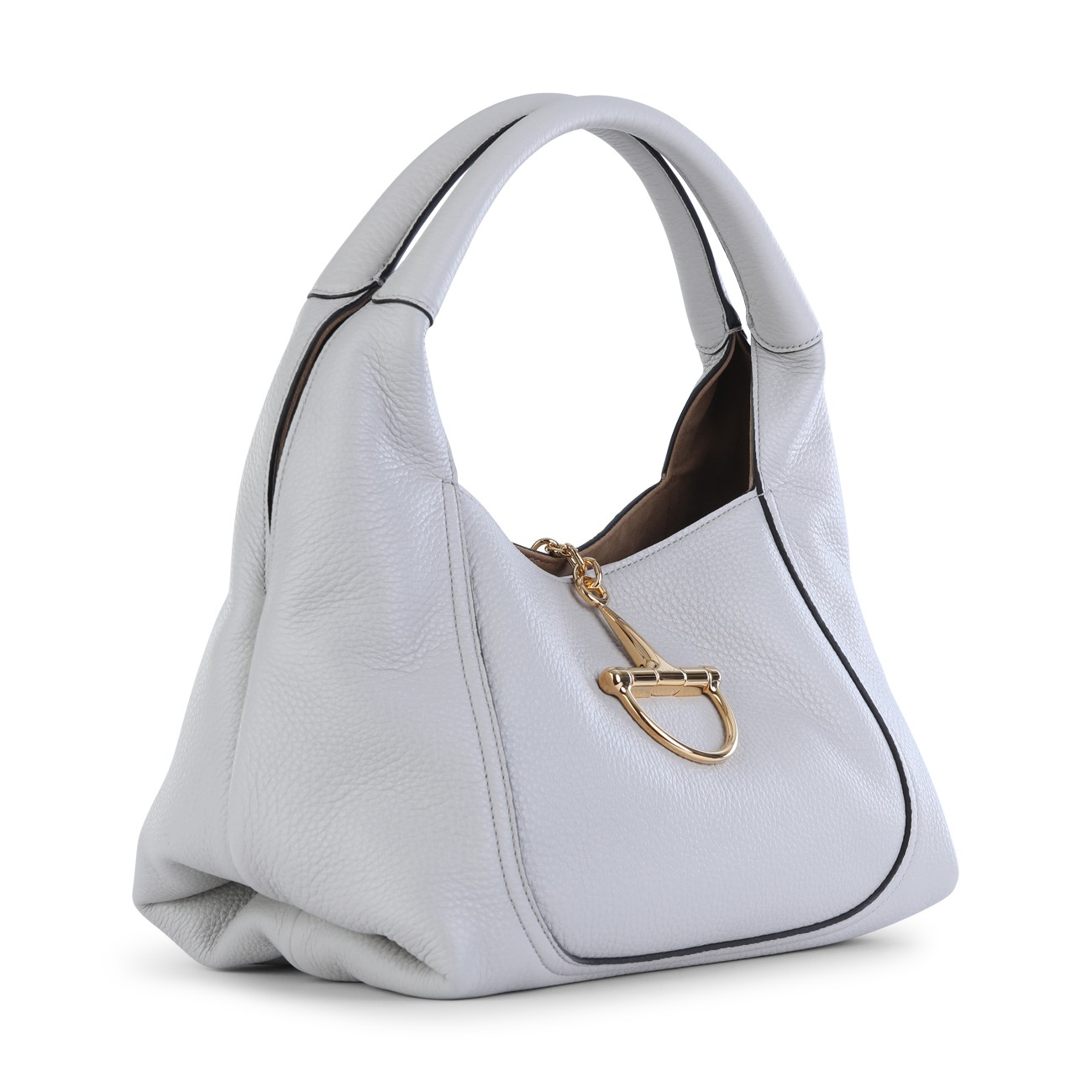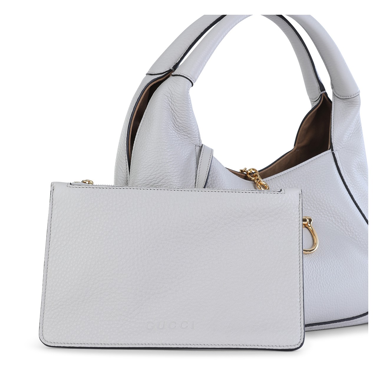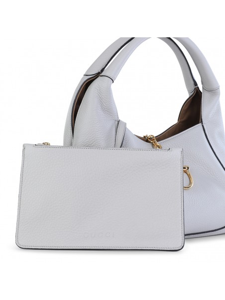 White leather Softbit totes from Gucci featuring top handle, gold tone hardware, inside pockets and frontal magnetic fastening.