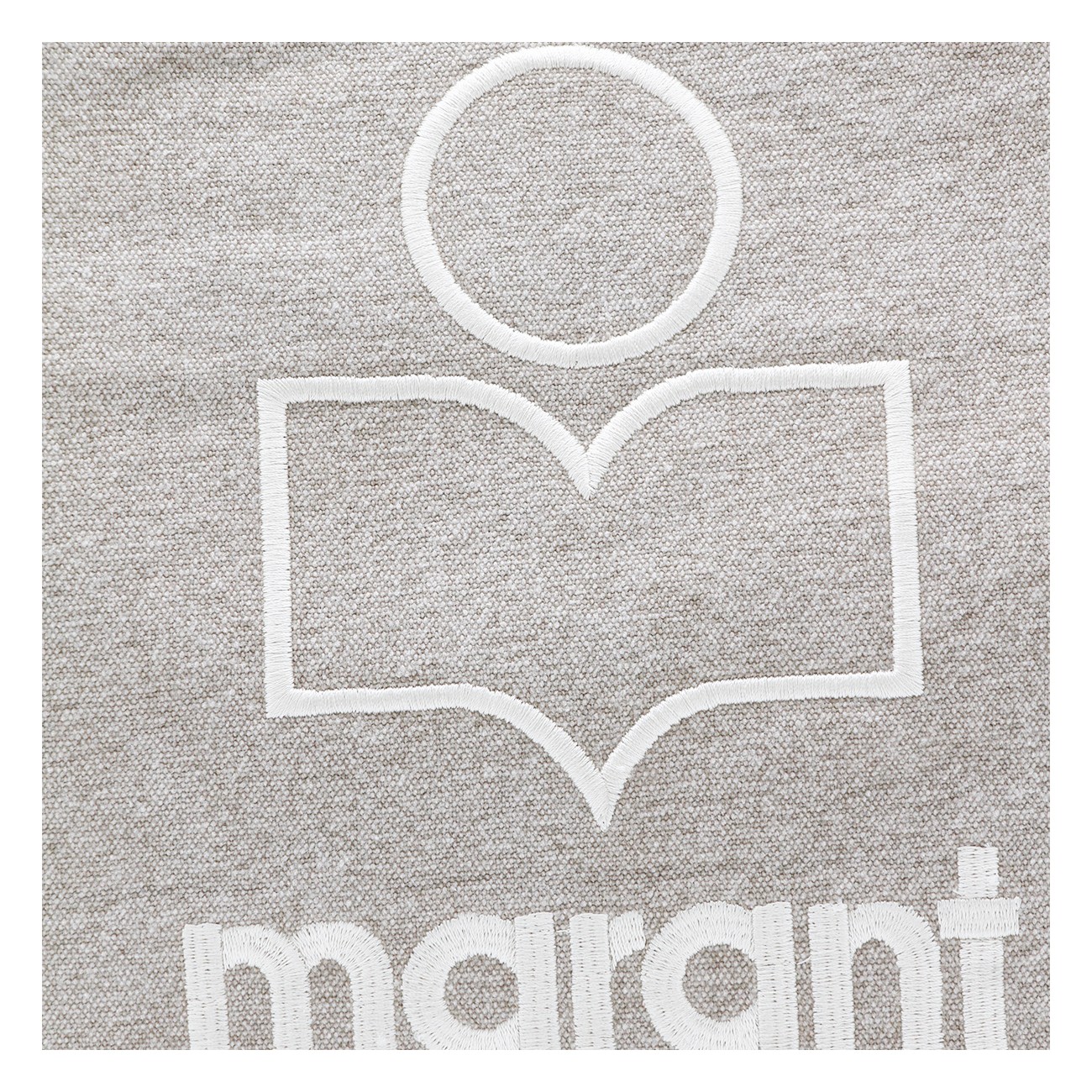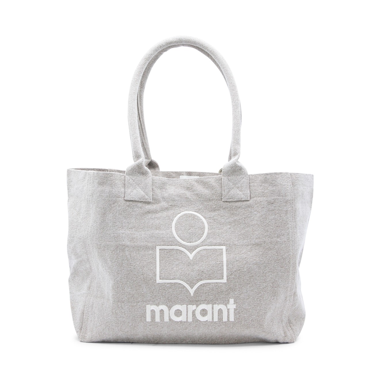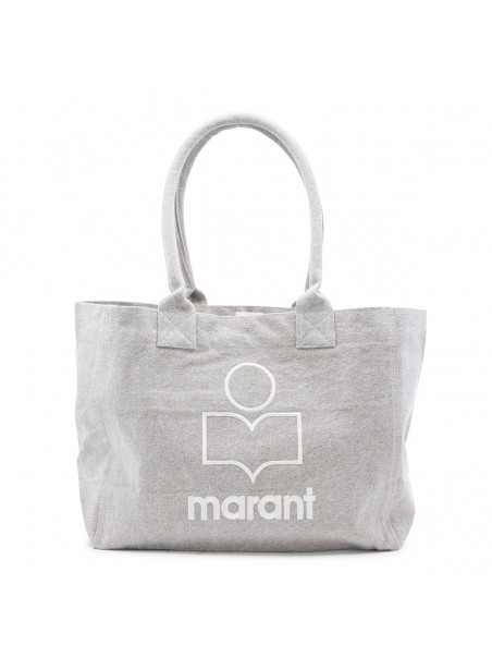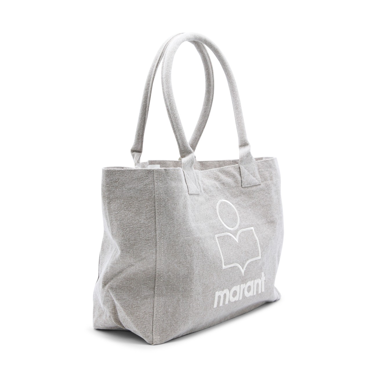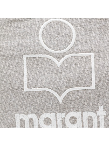 Beige cotton tote from Isabel Marant featuring top handles, main compartment and frontal logo stiching.
