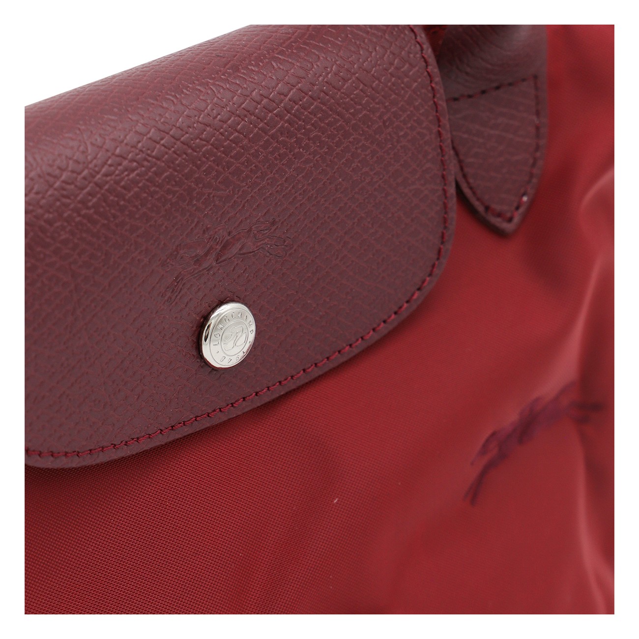 Dark red canvas Le Pliage S tote bag from Longchamp featuring round top handles, a foldover top with snap closure, a top zip fastening and gold-tone hardware.