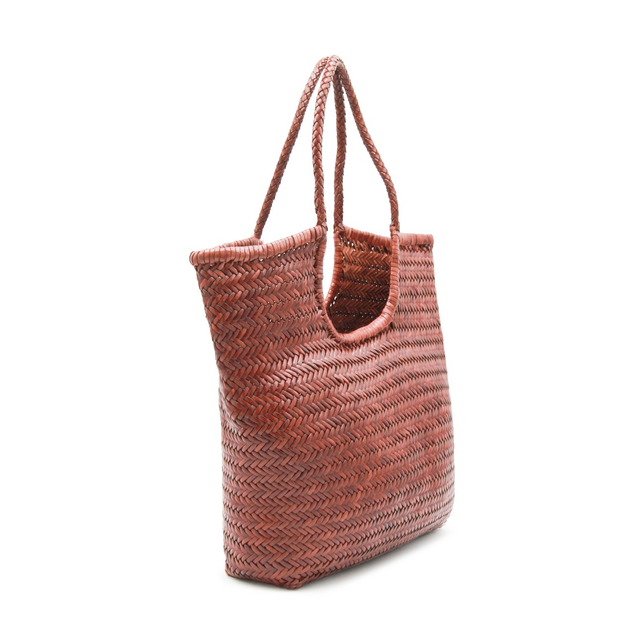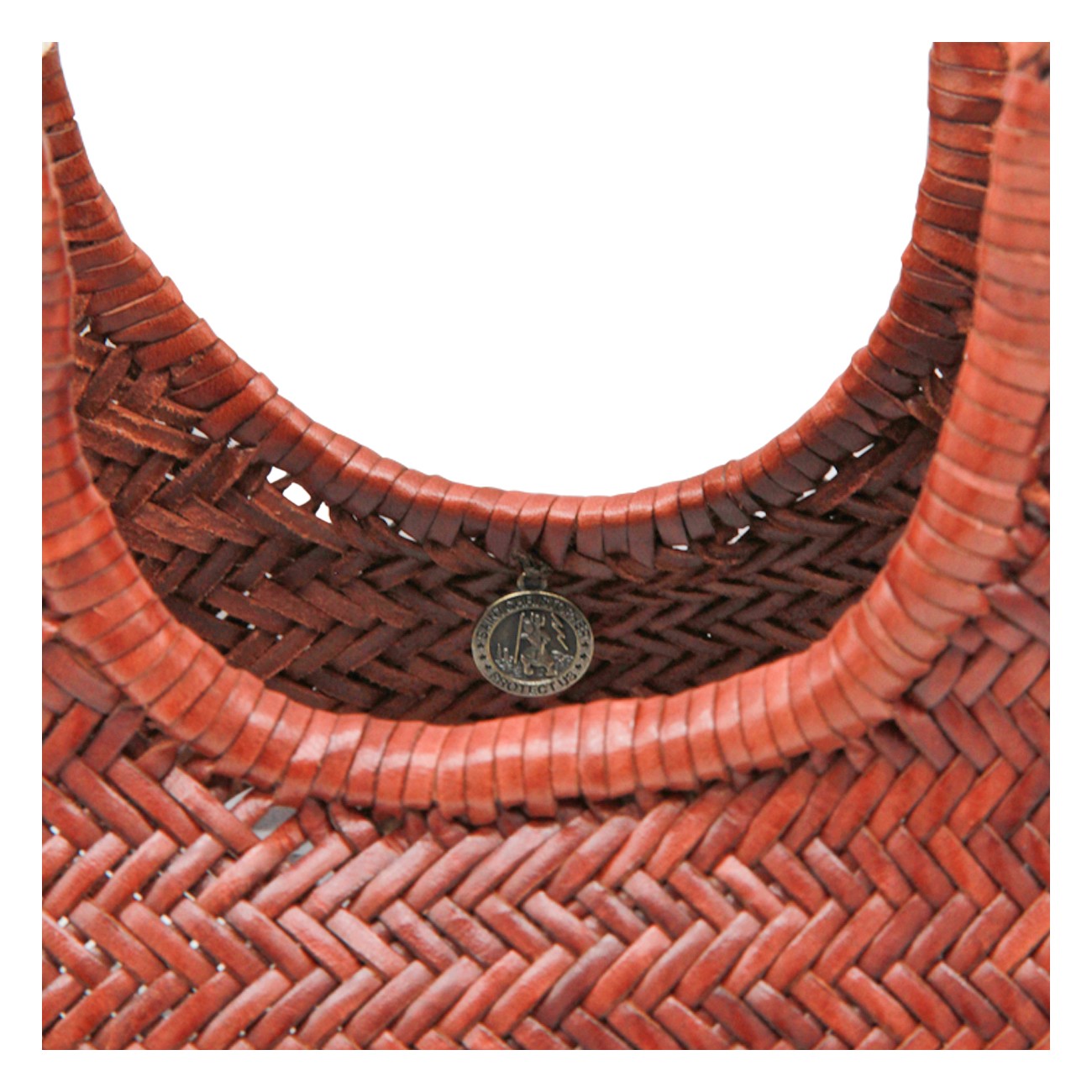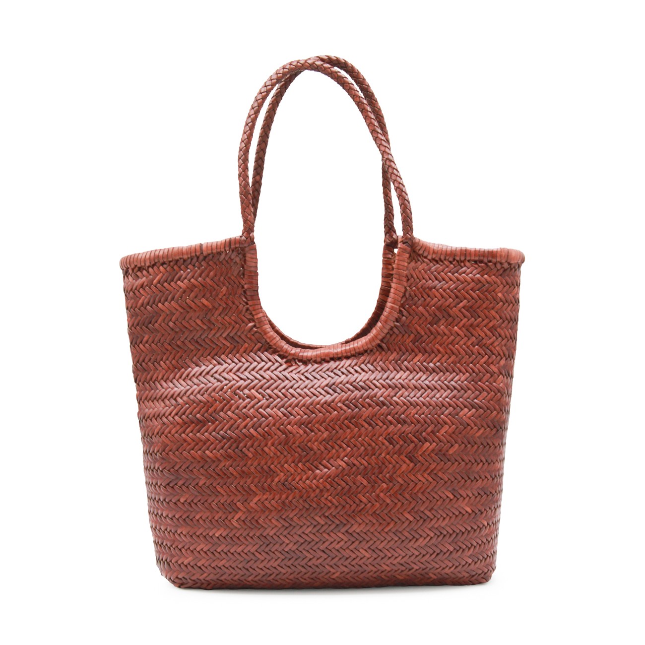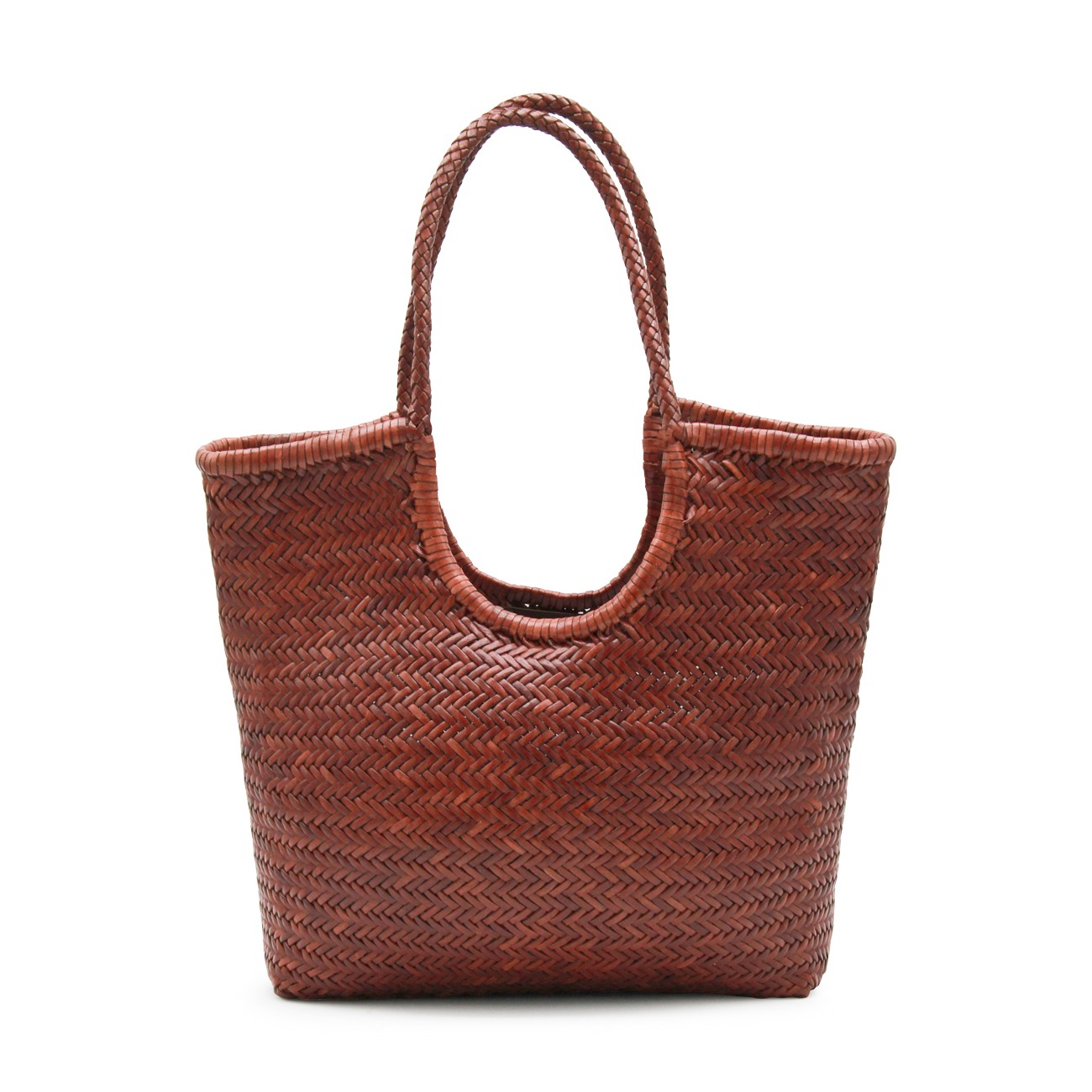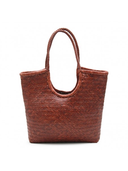 Brown leather Diagonal totes from Dragon Diffusion featuring top handles, upper fastening and inside pocket.