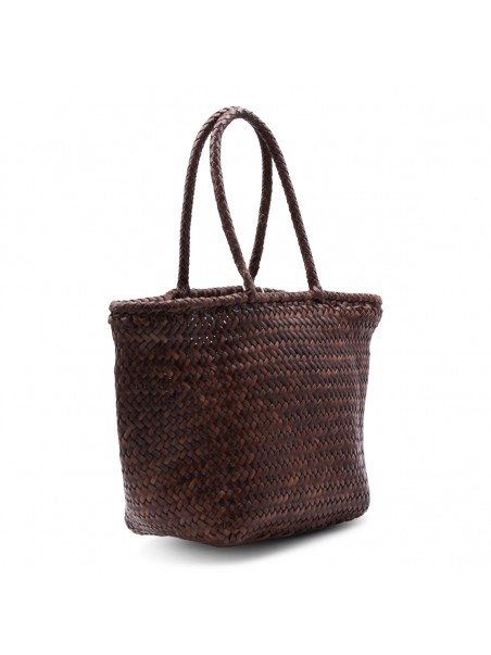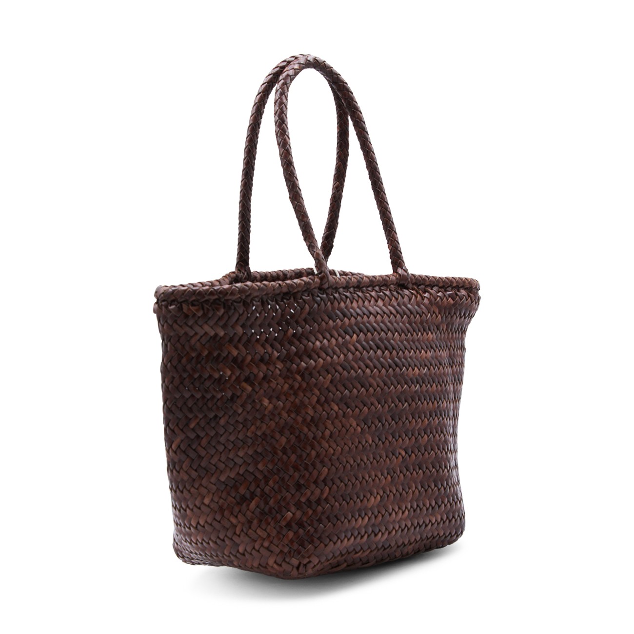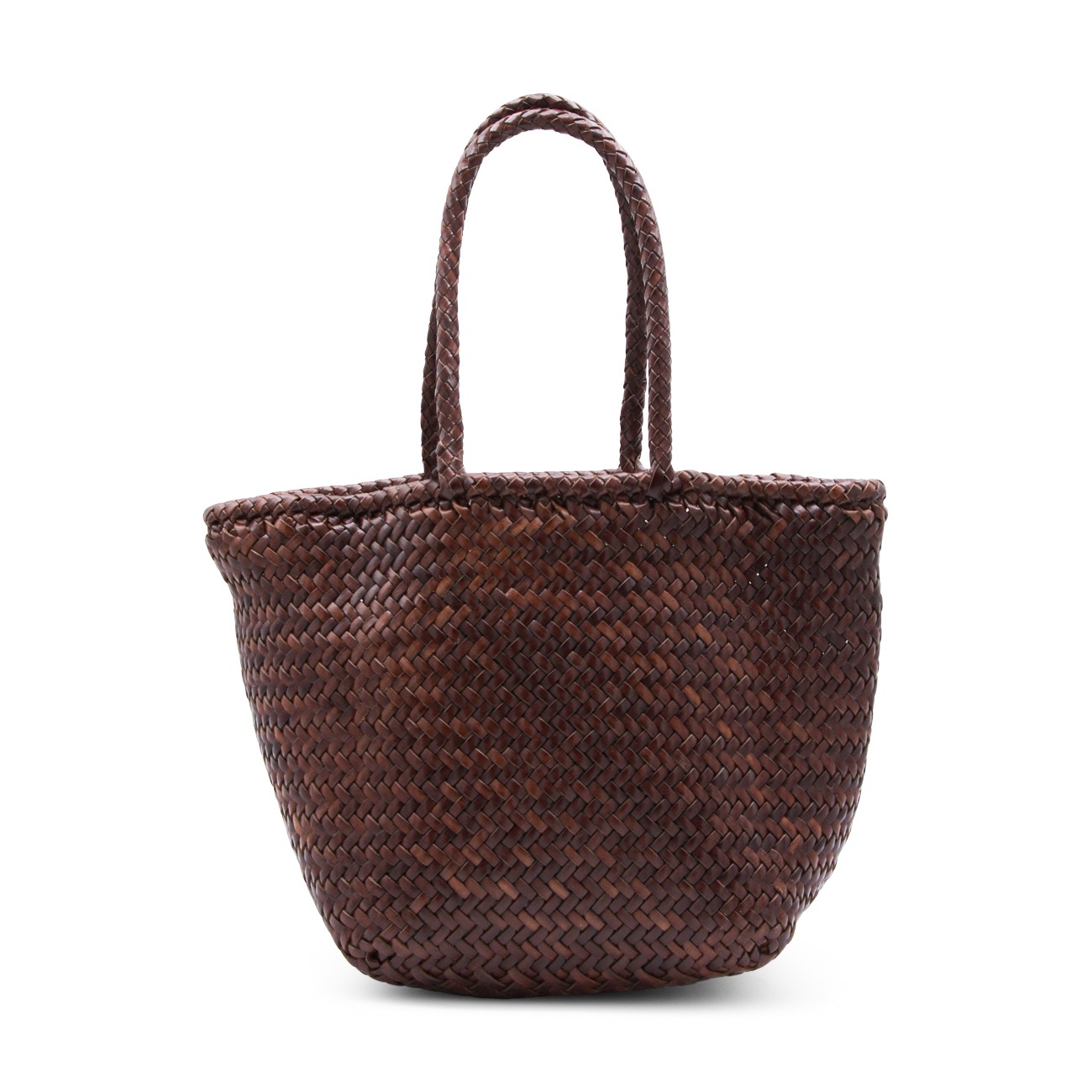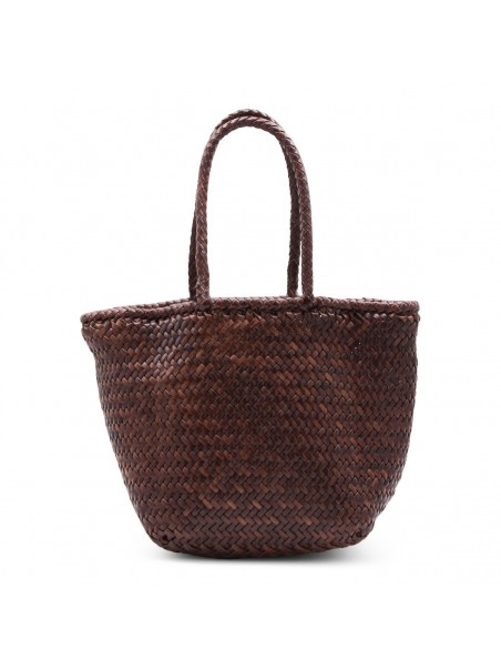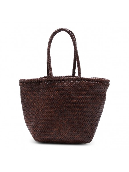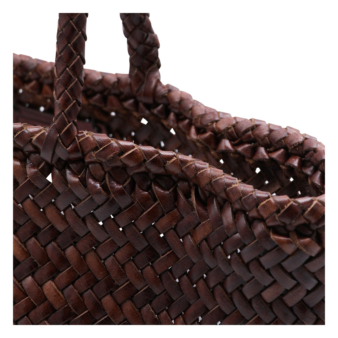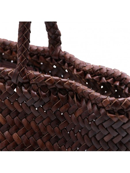 Dark brown leather Grace small tote from Dragon Diffusion featuring double shoulder strap, main compartment and knitted texture.