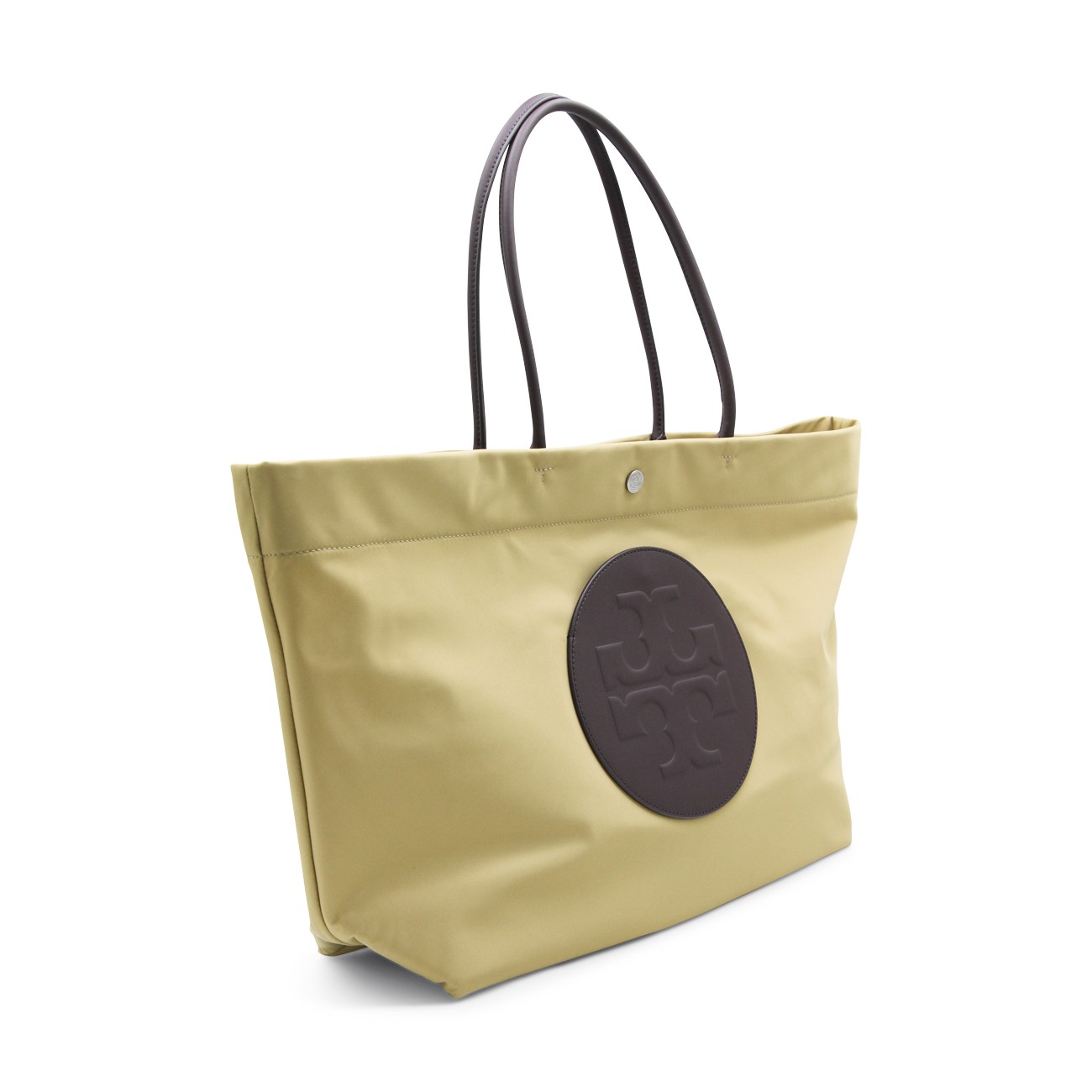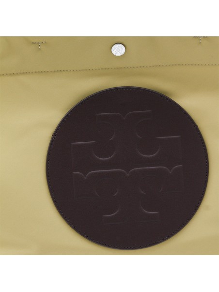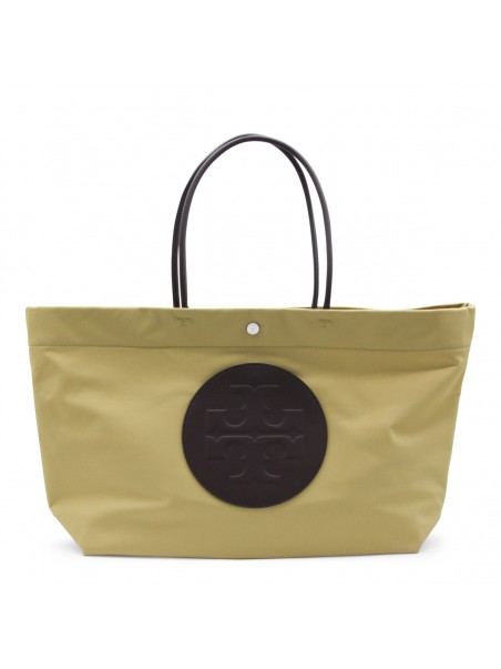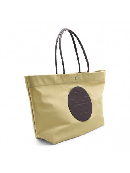 Wheat Ella Twist tote from Tory Burch featuring top handles, internal pocket with zip fastening, frontal logo and hidden external pocket.