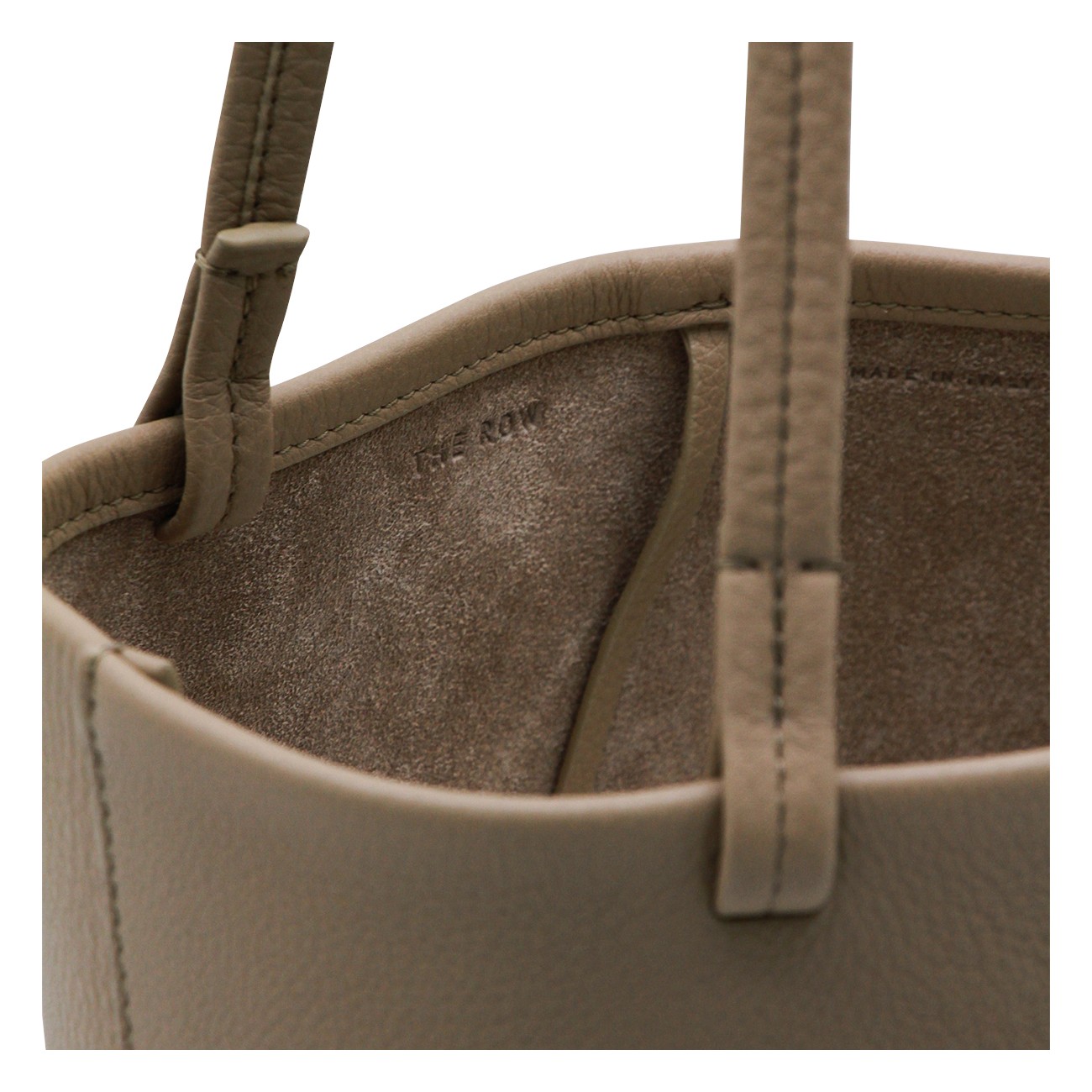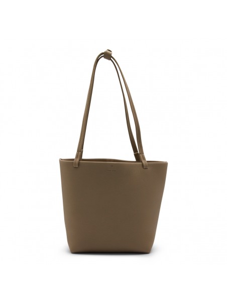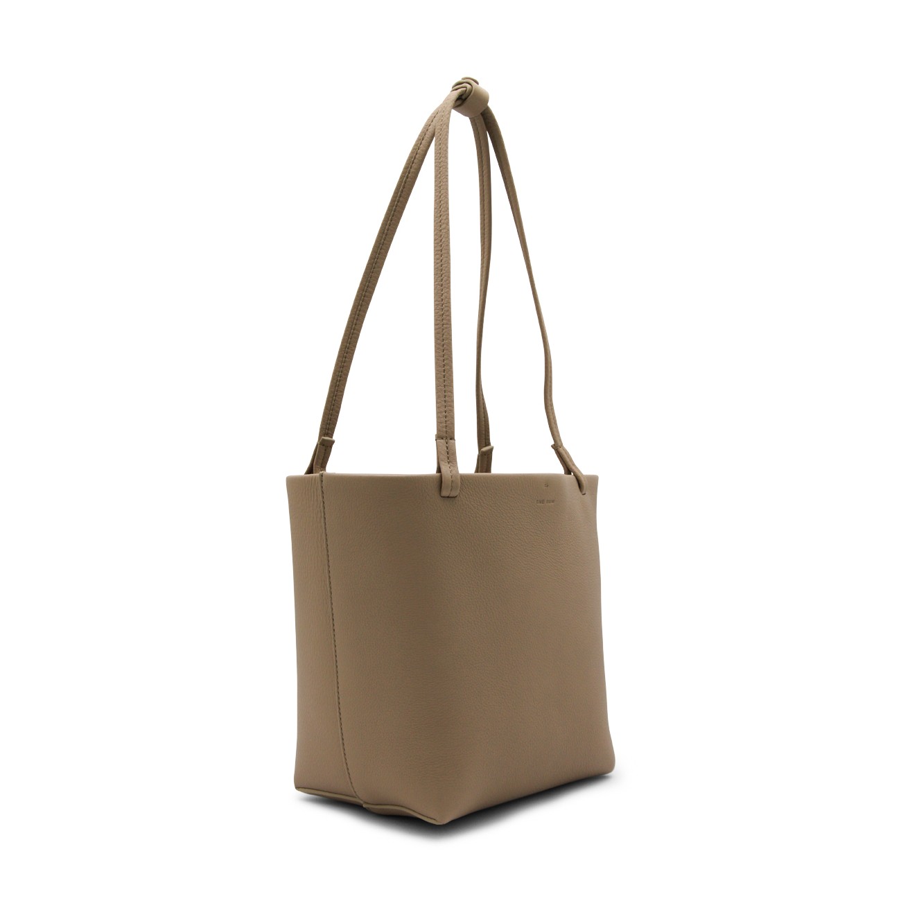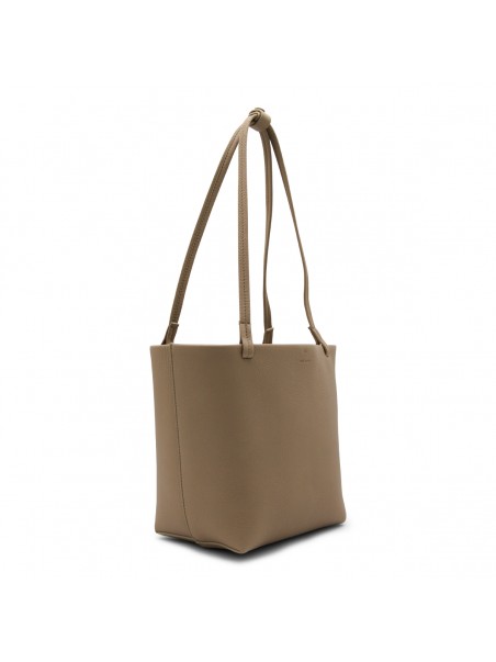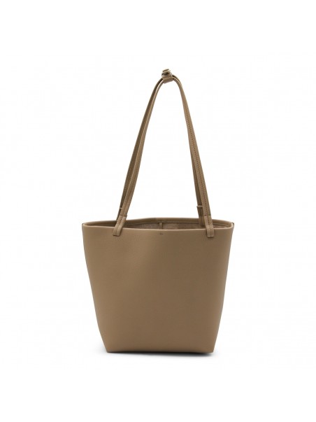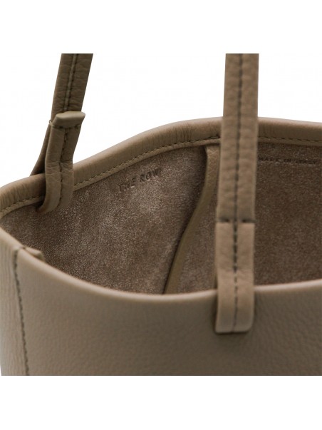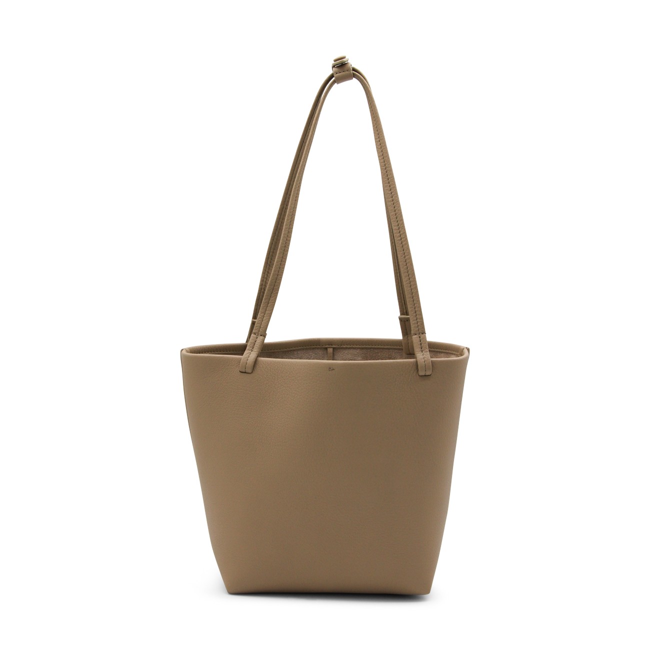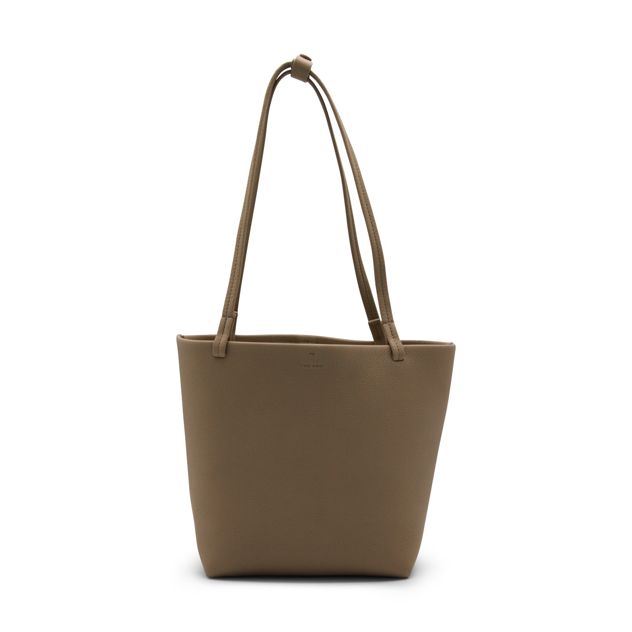 Dark taupe leather Medium Park tote bag from The Row featuring double shoulder strap, magnetic closure, main compartment and flap pocket.