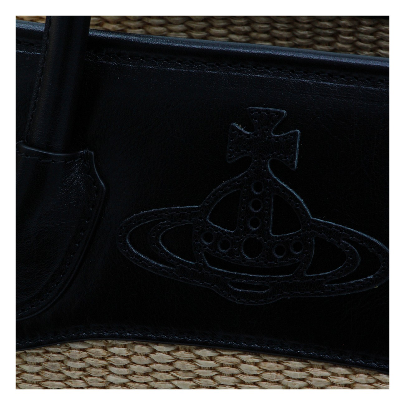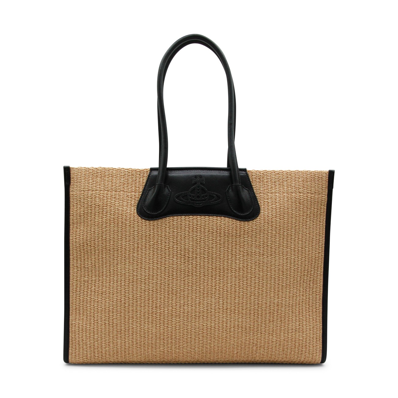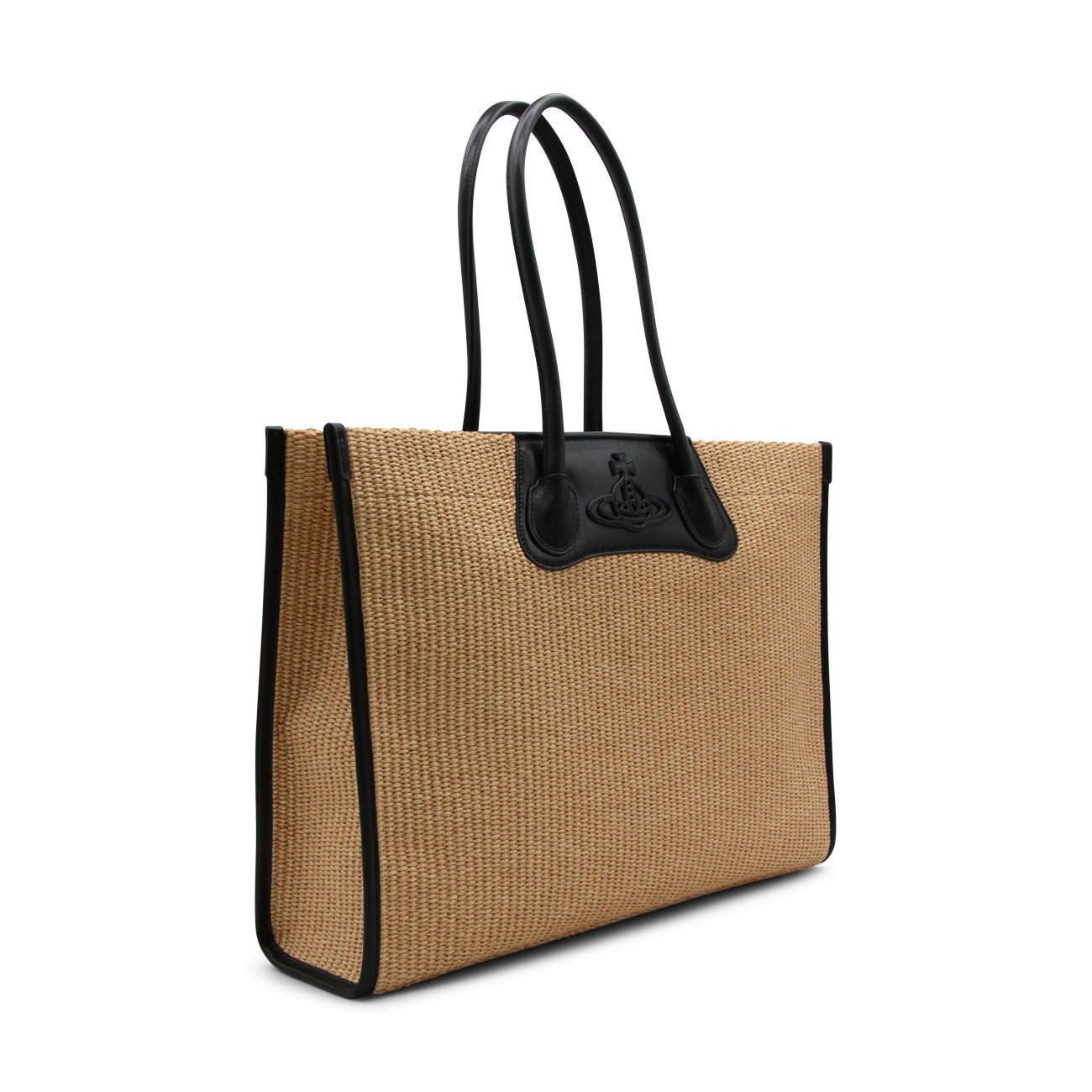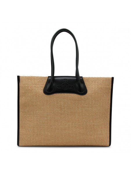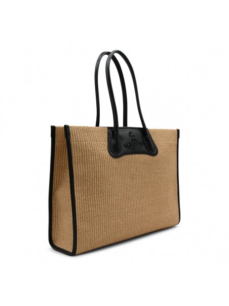Natural and black cotton tote from Vivienne Westwood featuring handles, zip fastening, main compartment and internal pockets.