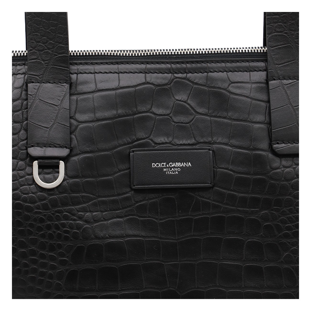 Black leather totes from Dolce&Gabbana featuring top handles, zip fastening, frontal logo patch and pocket.