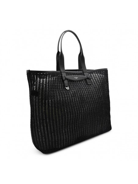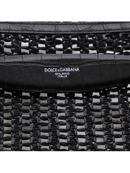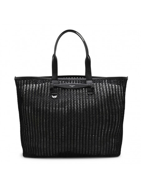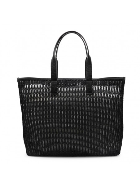 Black cotton totes from Dolce&Gabbana featuring top handles, frontal logo, pocket and trasparence.