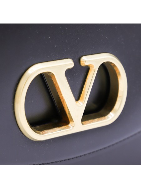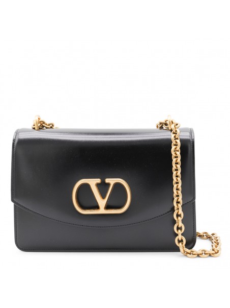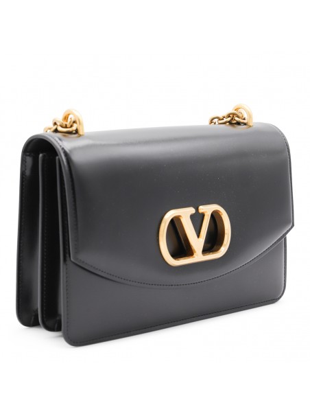 Black leather Vain shoulder bag from Valentino Garavani featuring frontal fastening, chain, frontal logo, pocket and gold tone hardware.
