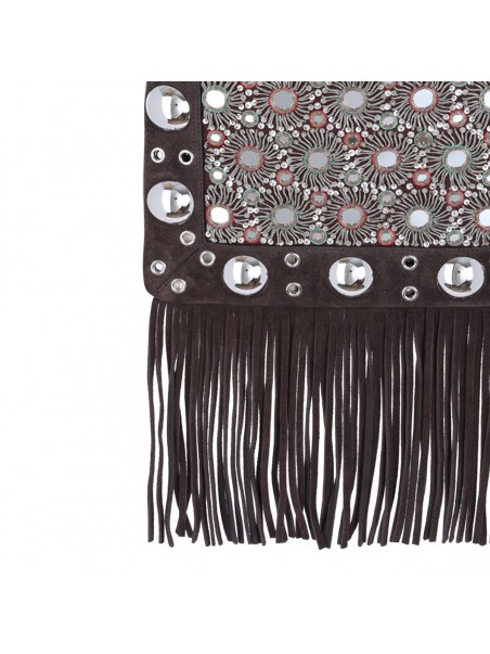 Brown Nellcote shoulder bag from Valentino Garavani featuring strap with buckle fastening, silver tone hardware, fringed hem, inside pocket and upper fastening.