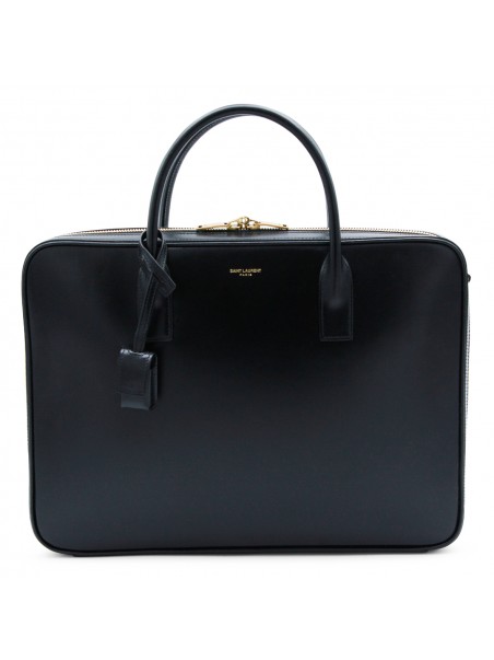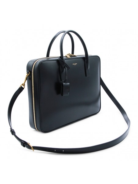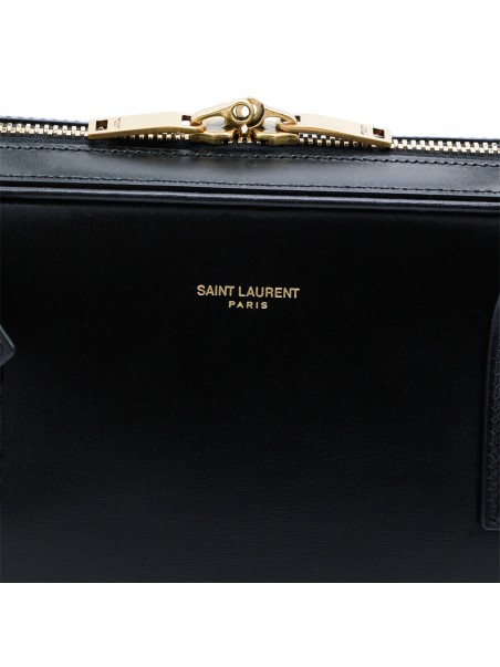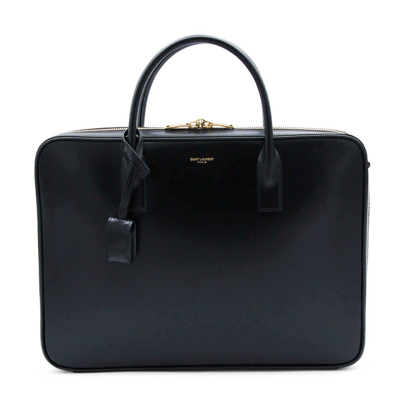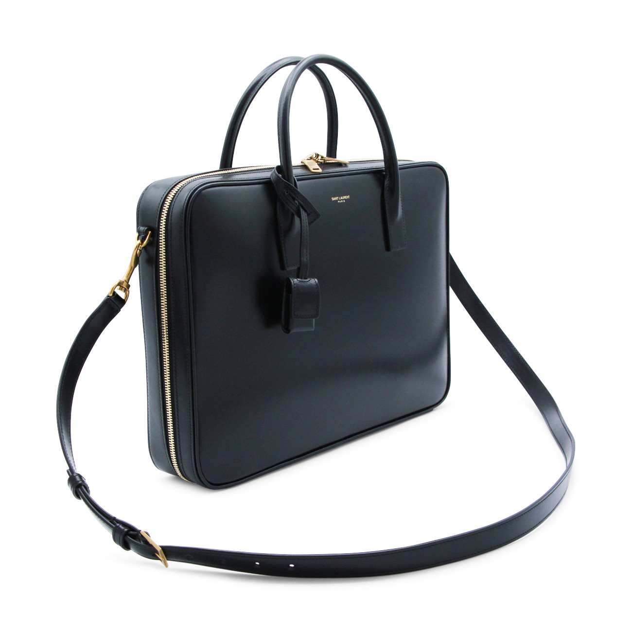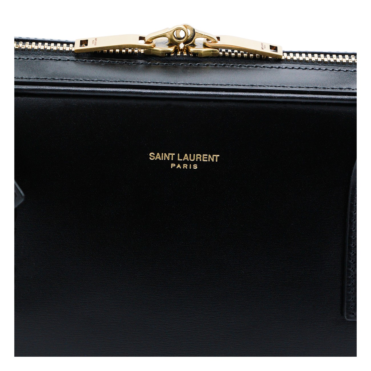 Black leather Sac De Jour large top handle bag from Saint Laurent featuring two handle, adjustable and removable shoulder strap, two-way zip closure, main compartment and internal zip pocket.
