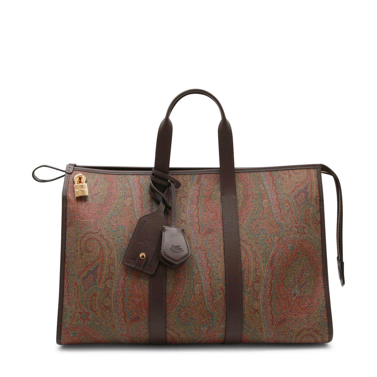 Brown bag from Etro featuring top handles, single compartment, zip fastening and all over pattern.
