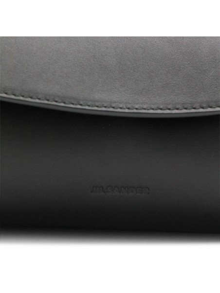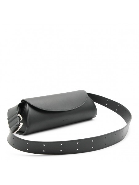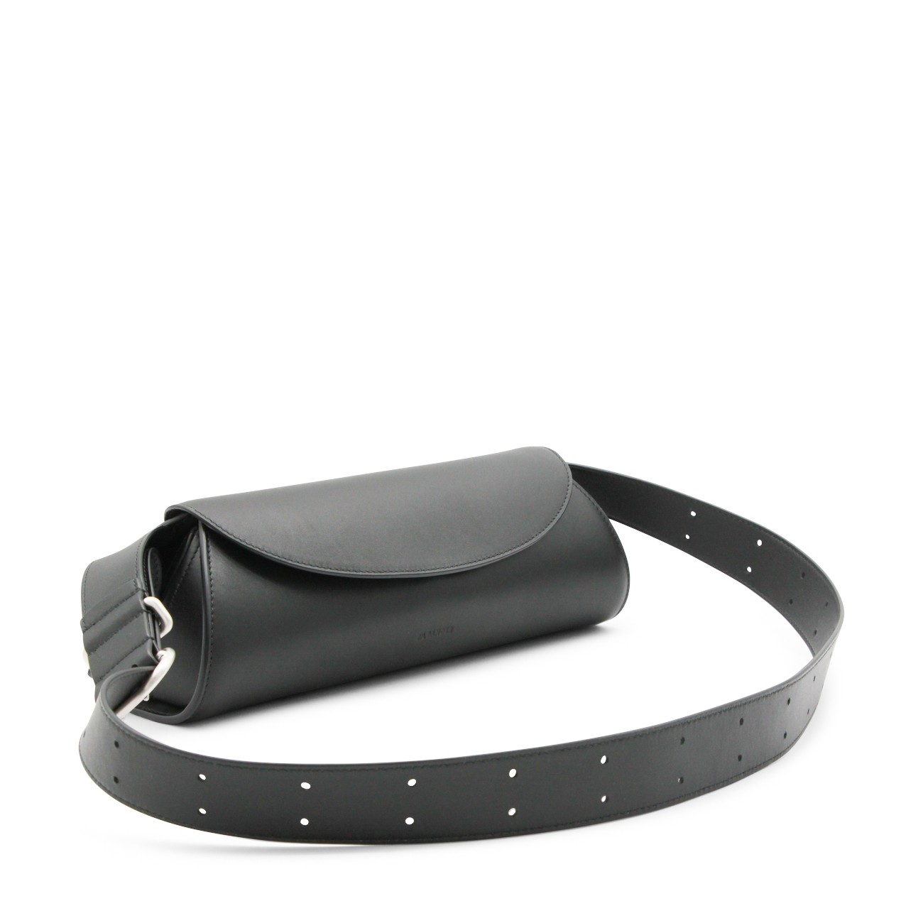 Black Cannolo SM shoulder bag from Jil Sander featuring adjustable strap, frontal fastening and main compartment.