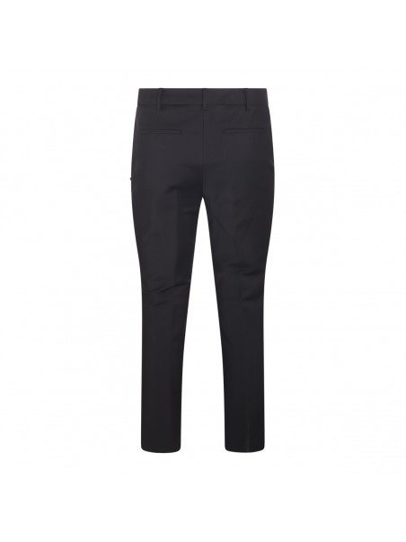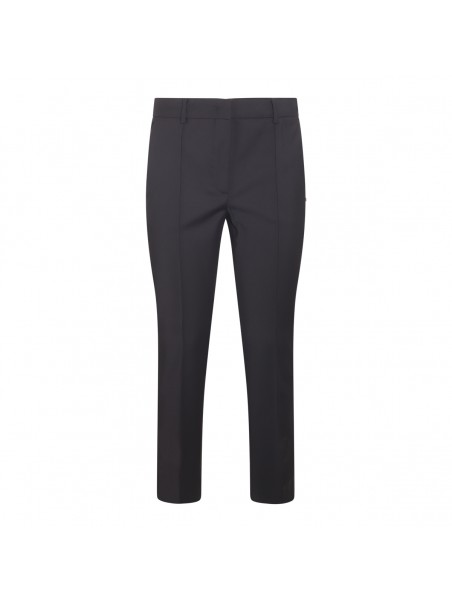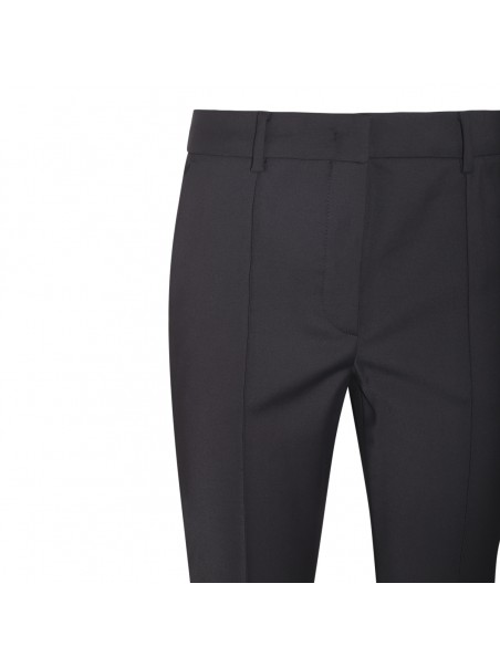 Black cotton stretch Asia pants from Sportmax featuring belt loops, side pockets and mini flare shape.