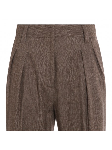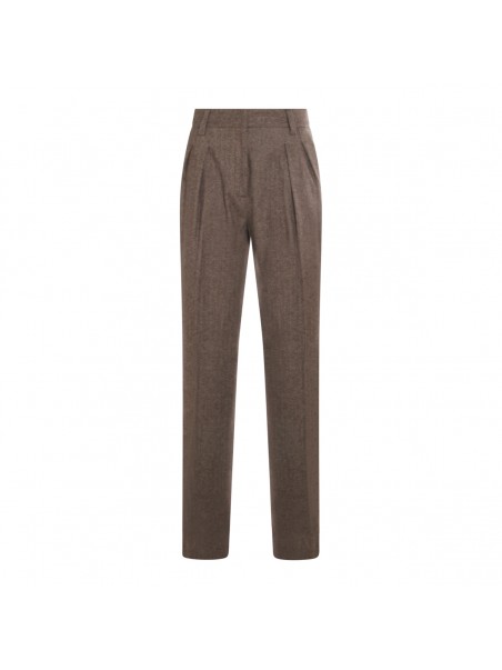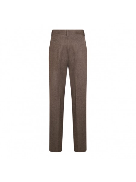 Brown wool Timo pants from Antonelli Firenze featuring belt loops, frontal fastening, pleats details and straight leg.
