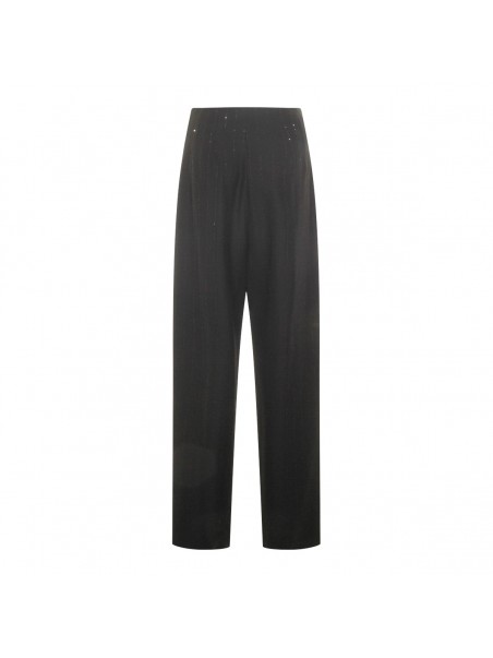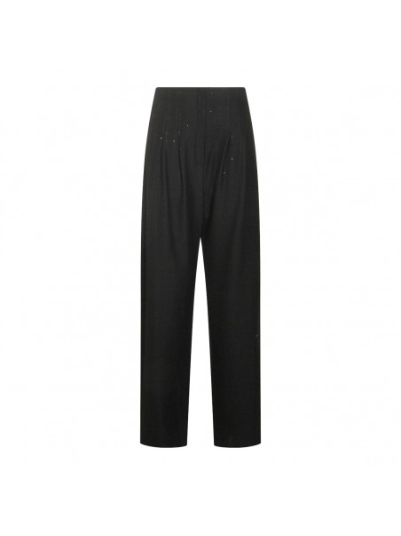 Black pants from Nissa featuring high waist, rhinestones detailing and wide leg.