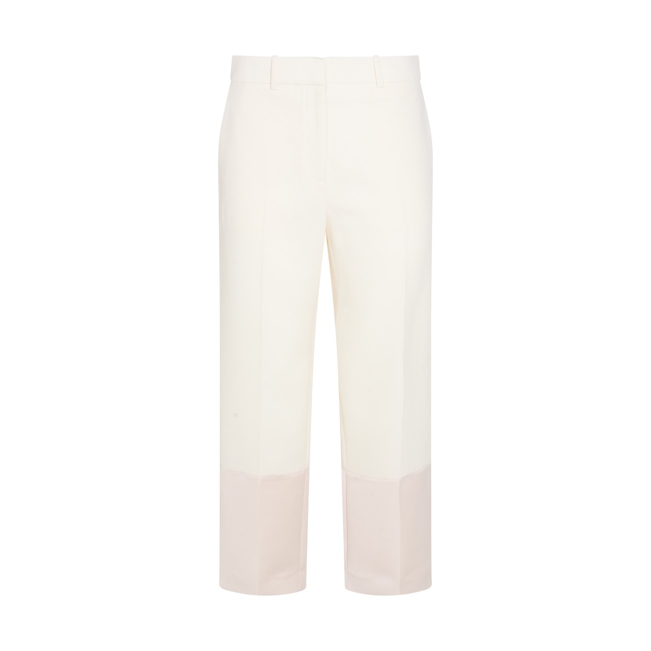 White pants from Tory Burch featuring frontal fastening, pockets and regular vestibility.