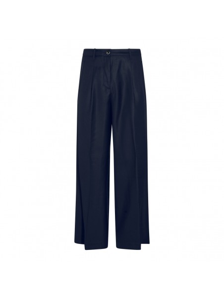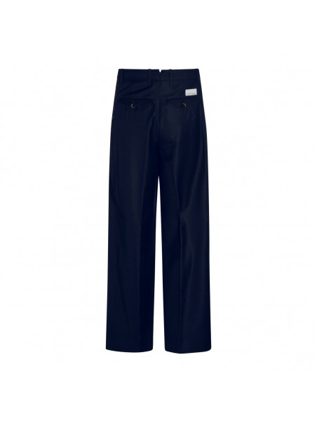Navy wool pants from Nine In The Morning featuring high waist, belt loops, zip and button fastening and wide leg.