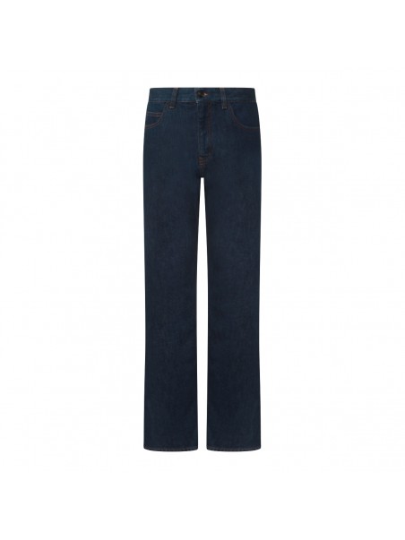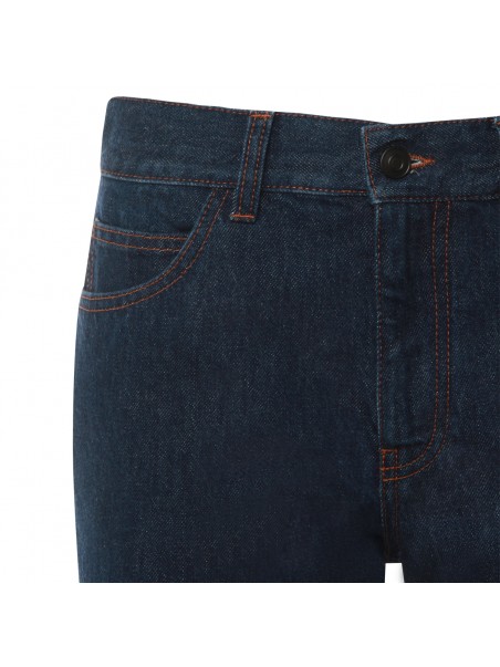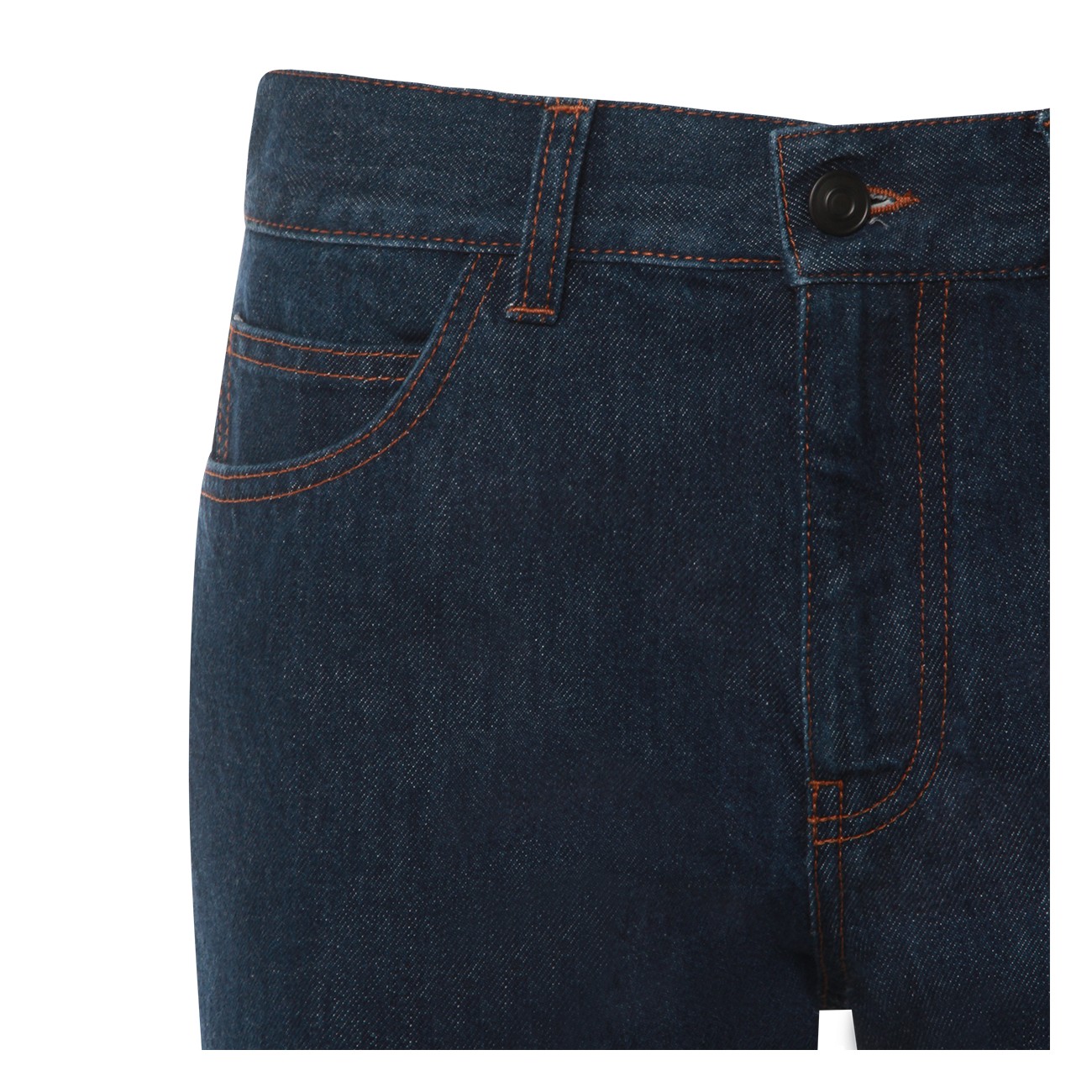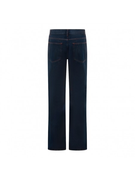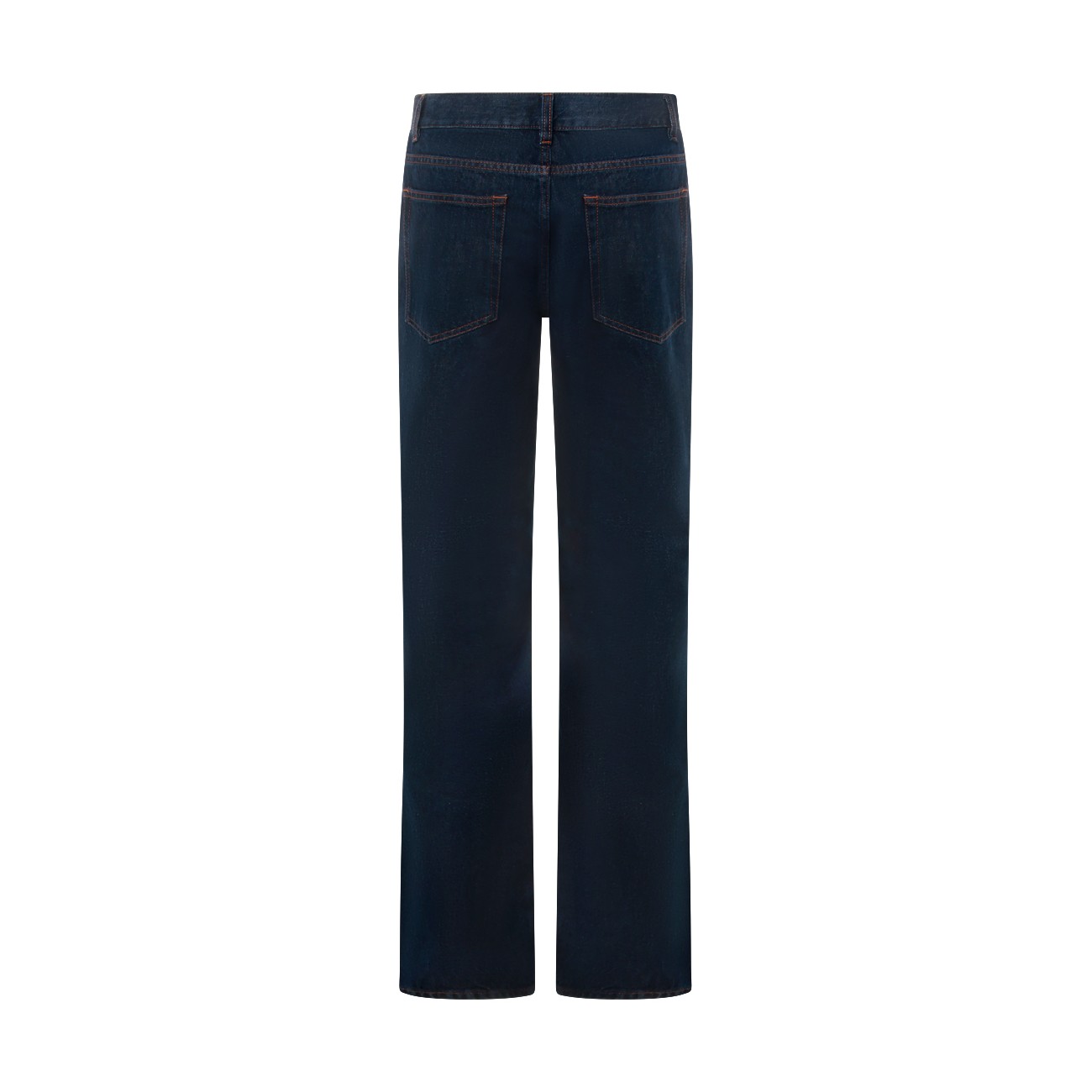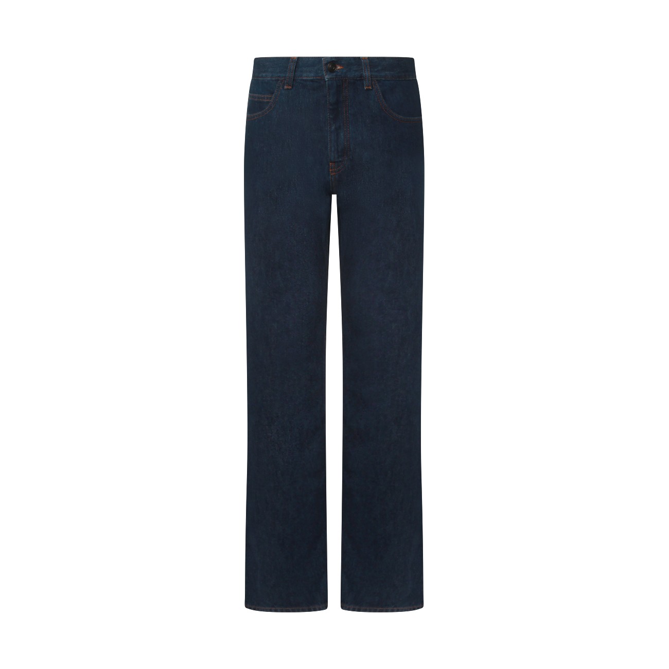 Indigo cotton Carlyl pants from The Row featuring mid waist, belt loops, frontal zip fastening, pockets and stright leg.