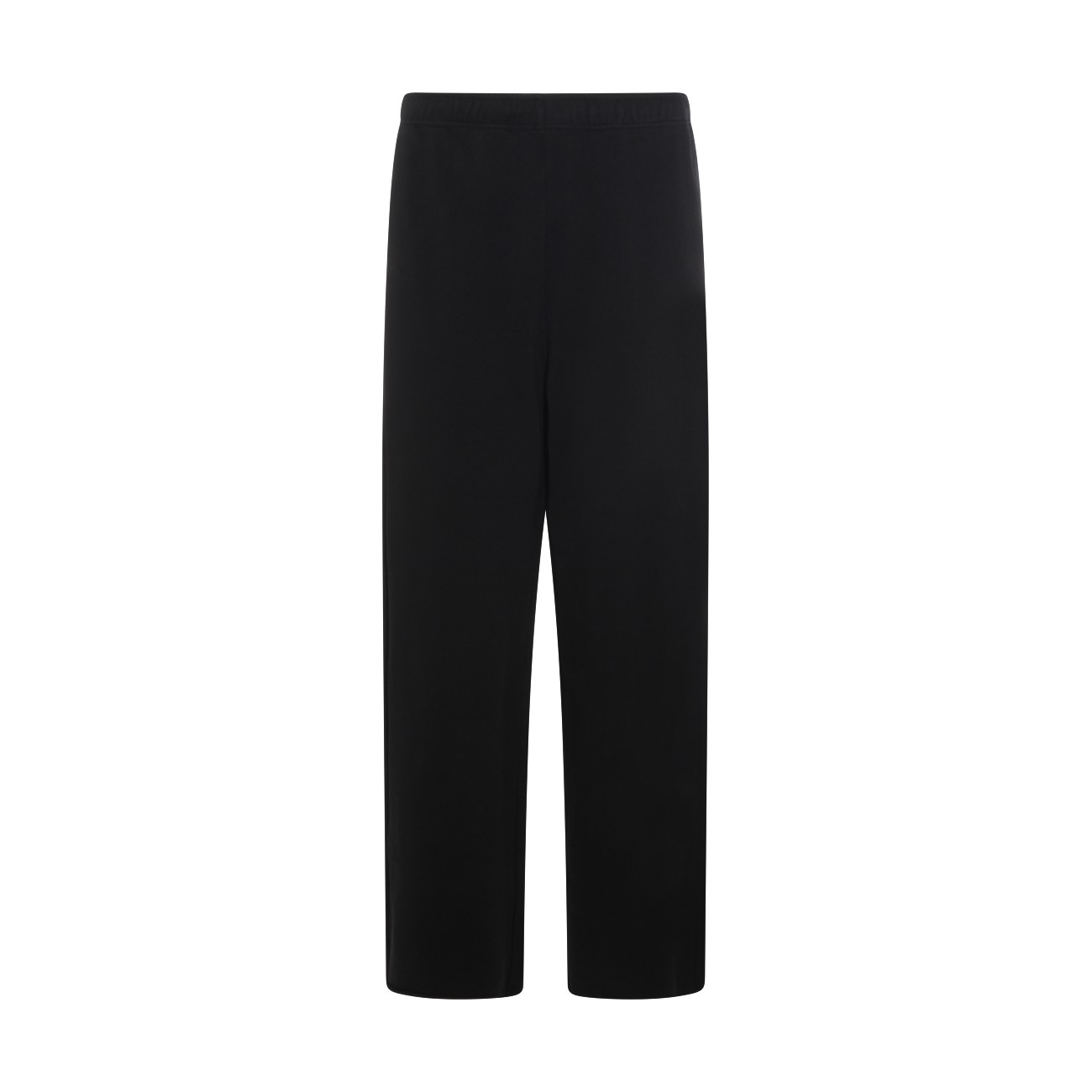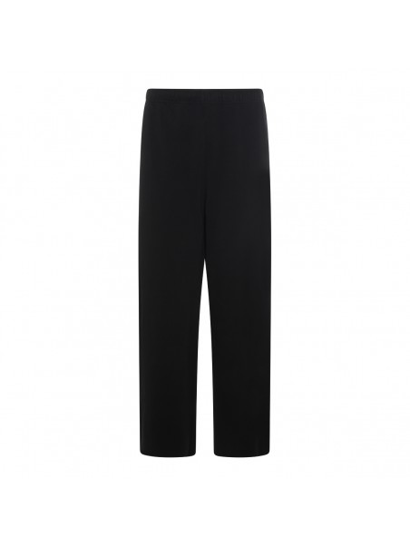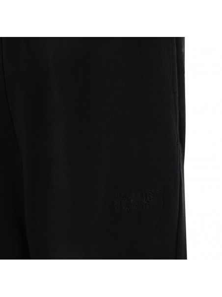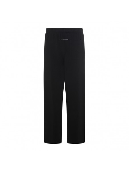 Black cotton pants from MM6 Maison Margiela featuring high elasticated waist, frontal logo, back pocket and loose vestibility.