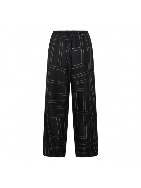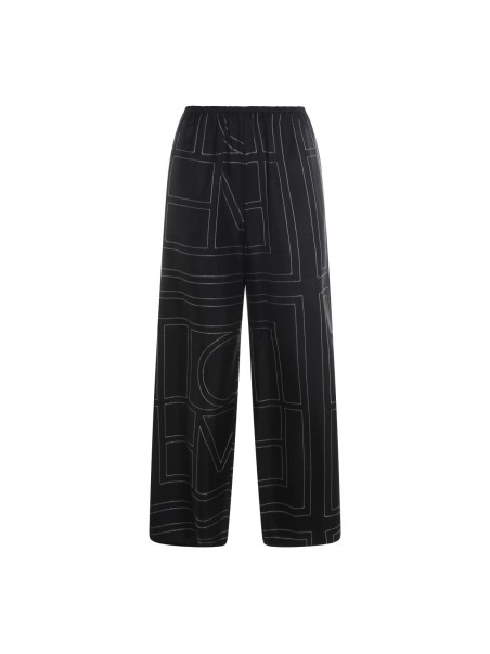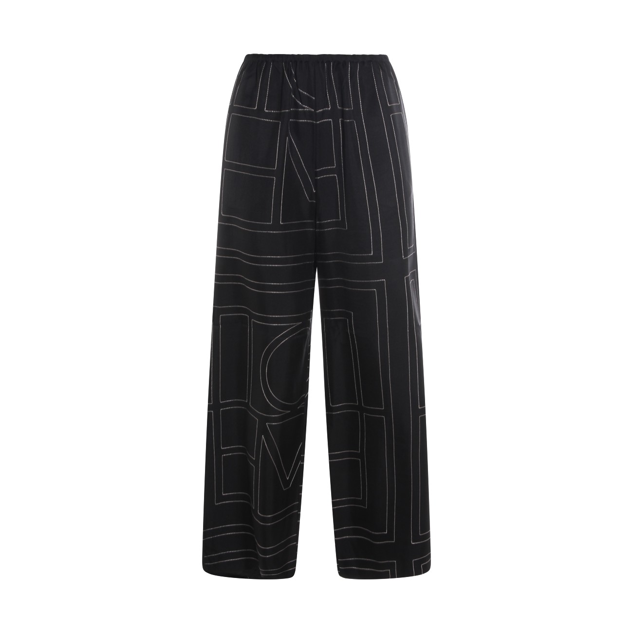 Black silk pants from Toteme featuring high elasticated waist, all over stitching details and loose vestibility.