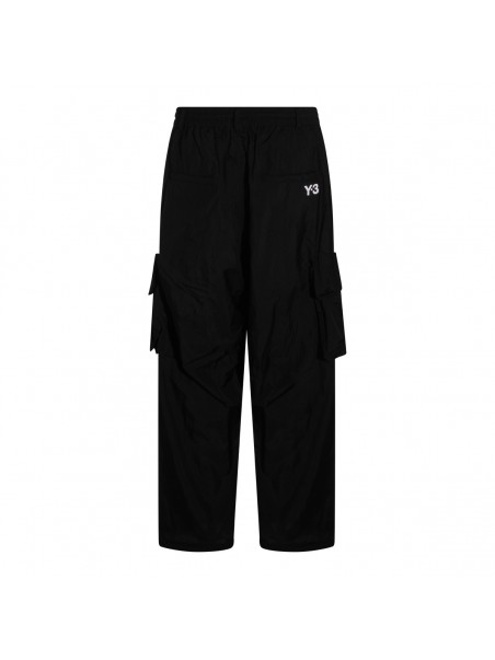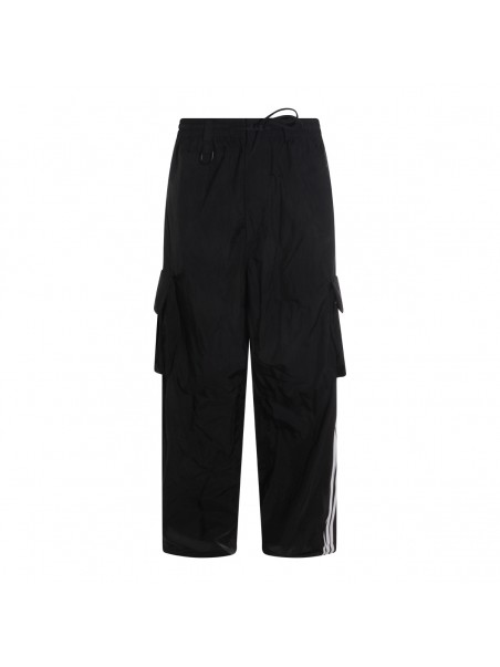 Black pant from Adidas Y-3 featuring back logo, frontal and back pockets, three iconic stripes, elasticated waist and loose fit.