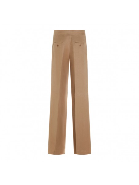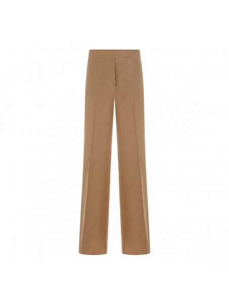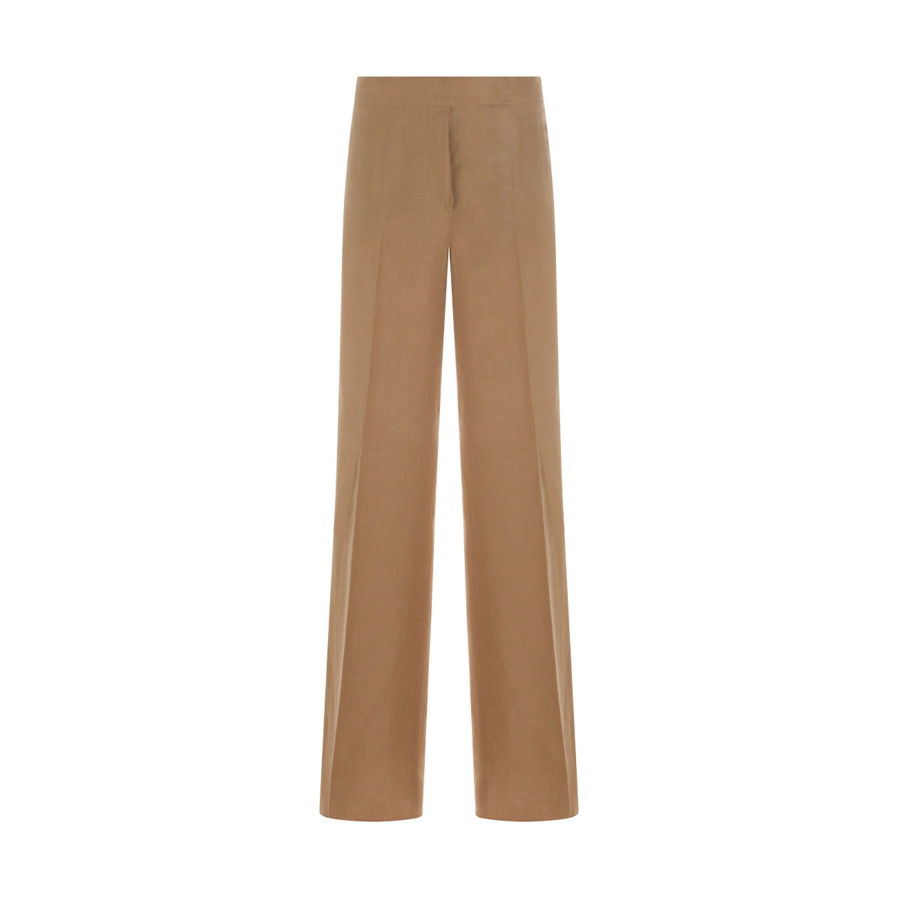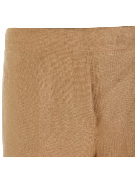 Camel linen pants from Max Mara featuring frontal fastening, pockets and regular vestibility.