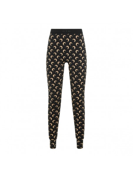 Black pant from Marine Serre featuring elasticated waist, all-over Moon print and tight fit.