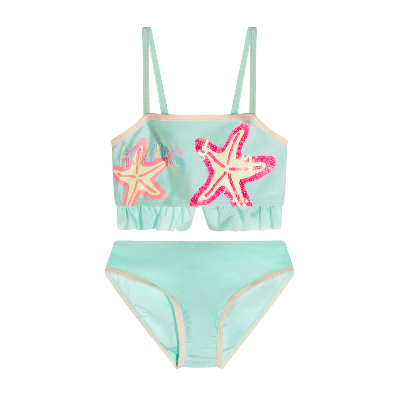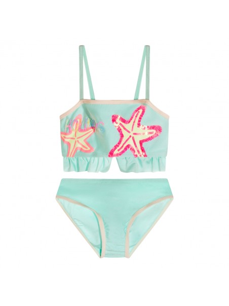 Turquoise beachwear from Billieblush featuring sleeveless, two pieces and frontal logo stamp.